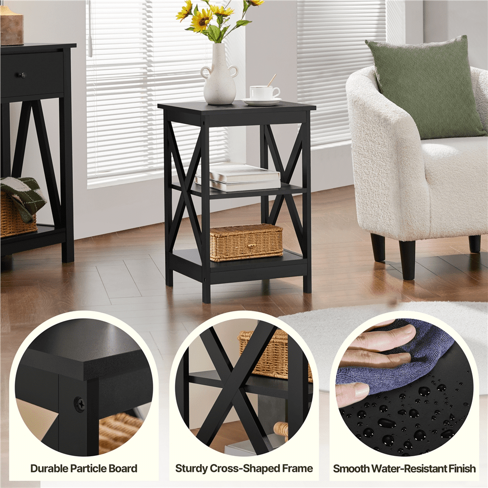 Renwick 3 Tier Wood X Shape Square End Table for Living Room, Black