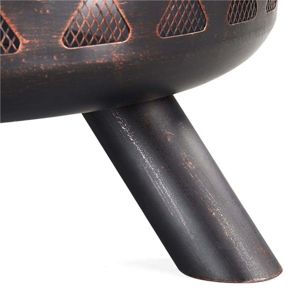 Material: Iron Color: Bronze Overall size: 23.5 x 36 inch (Depth x Dia.) The size of the fire bowl: 10.2 x 29 inch (Depth x Dia.) Max. weight capacity of the fire bowl: 33 lb G.W.: 27.3 lb N.W.: 20.3 lb Note: Please allow ± 0.4 inch variation due to manual measurement. Safety Tips: 1. Please use this fire pit on non-combustible surfaces such as cement ground, rocks, or sand for your safety. 2. Please don’t use it on lawns, wooden decks, or in any enclosed room.