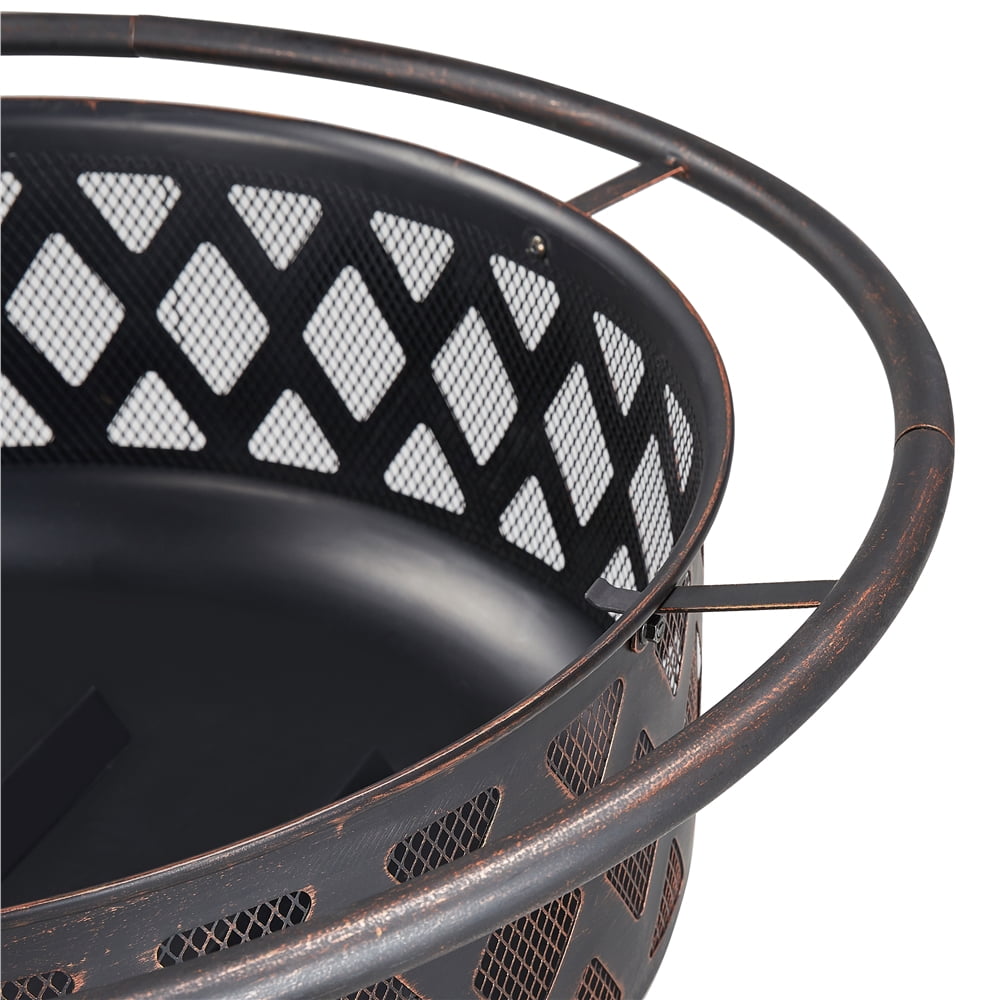 Renwick 36in Outdoor Iron Fire Pit with Mesh Screen Poker, Bronze