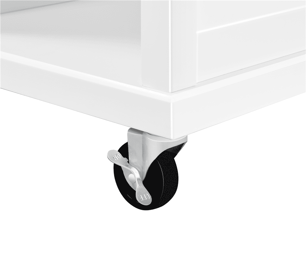 This Renwick Kitchen Cart is crafted from CARB P2-compliant engineered wood base and 0.5mm thick stainless steel countertop. The interior shelf of the side cabinet and the open shelf can be adjusted to three different heights (9.4”, 12”,14.4”) to accommodate your storage needs. This mobile kitchen island sits on 4 caster wheels that offer effortless maneuverability. With a four-wheel base, it can go anywhere you need it and the 2 locking casters can keep it in place when you don’t want it to move. An easy-to-clean stainless steel countertop gives you extra elbow room as you prep, serve, and stow.