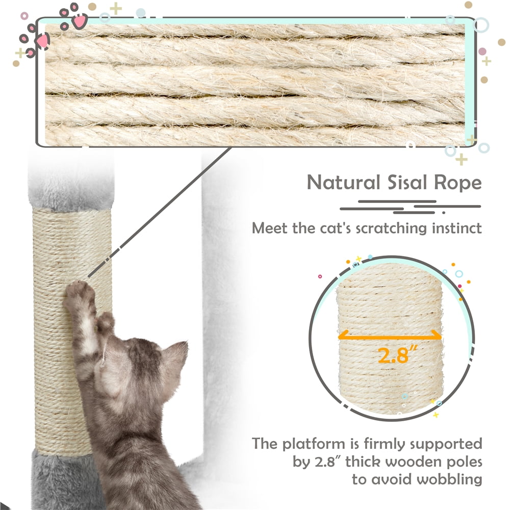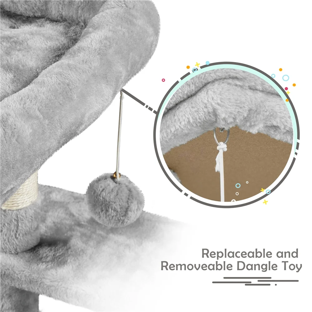 To satisfy cats’ habits and hobbies, we present this Easyfahion multilevel cat tree to you and your cute kitten. This cat tower is made from durable particleboard and soft plush, very soft and comfortable. With an anti-toppling strap attached to the cat tree, it is stable and sturdy. This 46″ H cat tree has multiple levels and an interesting layout. With a top perch, a basket, several platforms, and a condo, this is a good place for cats to play and rest, full of joy and happiness.