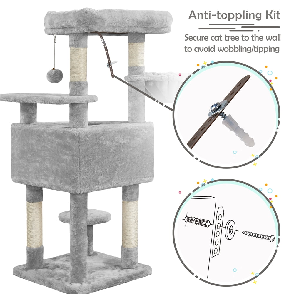 Renwick 46″ H Multilevel Plush Cat Tree Indoor Activity Tower with Condo, Light Gray