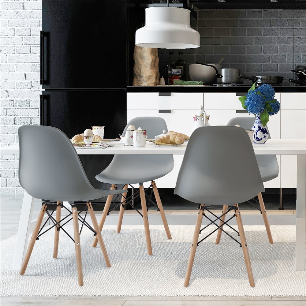 Need some unique furniture to refresh your home? Choose our modern style dining chairs! This set of 4 dining chairs are constructed of durable PP, natural beech wood, and metal supports. The selected materials provide you with natural experience and strong support. The maximum weight capacity of each chair is 135kg/297.6lb.Natural selected materials do no harm to you and your family. The just-right curved backrest and four solid wood legs, this set of 4 dining chairs will bring you much comfort and beauty. The package includes 4 pieces of dining chairs, great matching a dining table or a coffee table. They work well for home use and office use, living room, kitchen, meeting room, etc. If you are a restaurant owner, they will add extra fashion and natural beauty to your place.We have several colors for you to choose from. If you have any problems and questions, please feel free to contact us. Choose us, have a comfortable life!
