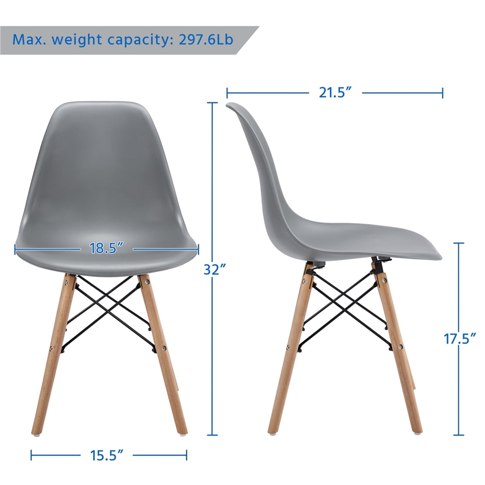 Renwick 4PCS Modern Dining Chairs with Wood Leg for Kitchen, Gray: Material: Beech, PP and metal Color: Gray Qty: 4PCS Overall size: 46.5 x 54 x 81.5cm (L x W x H); Max. weight capacity: 135kg; G.W.: 16.5kg; N.W.: 14.6kg Overall size: 18.5 x 21.5 x 32inch (L x W x H); Max. weight capacity: 297.6lb; G.W.: 36.4lb; N.W.: 32.2lb * Please Note: Please allow ±1cm error due to manual measurement. Residential Use Assembly Required