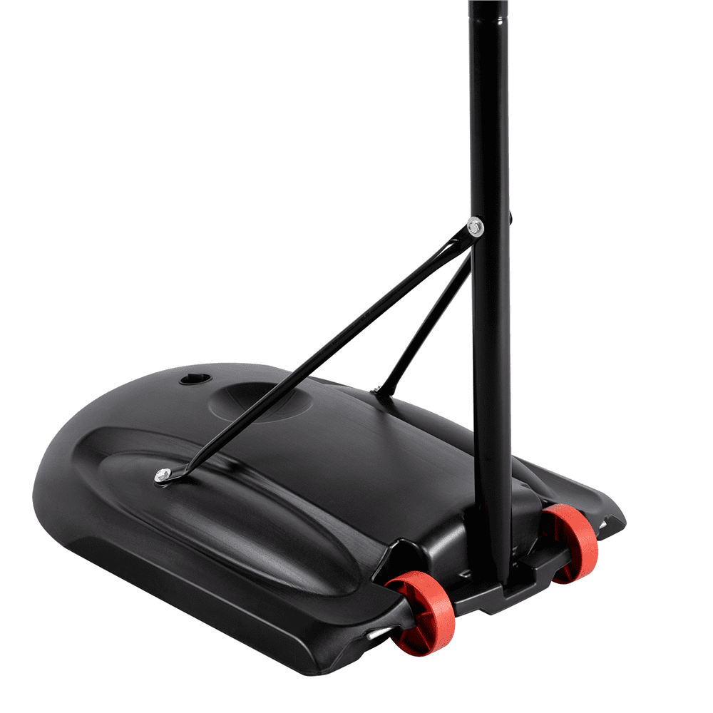 The mobile base can be filled with water or sand to ensure added safety, yet it remains effortless to transport the basketball hoop system anywhere. The telescopic post can be easily adjusted from a hoop height of 5.6′ to 7.6′ in increments of 4”, allowing this basketball stand to adapt as your kids grow. Better yet, you can not only set the hoop height at 7.6′ for home-court play but also lower it to 5.6′ for indoor or pool basketball games. Simple assembly is required.