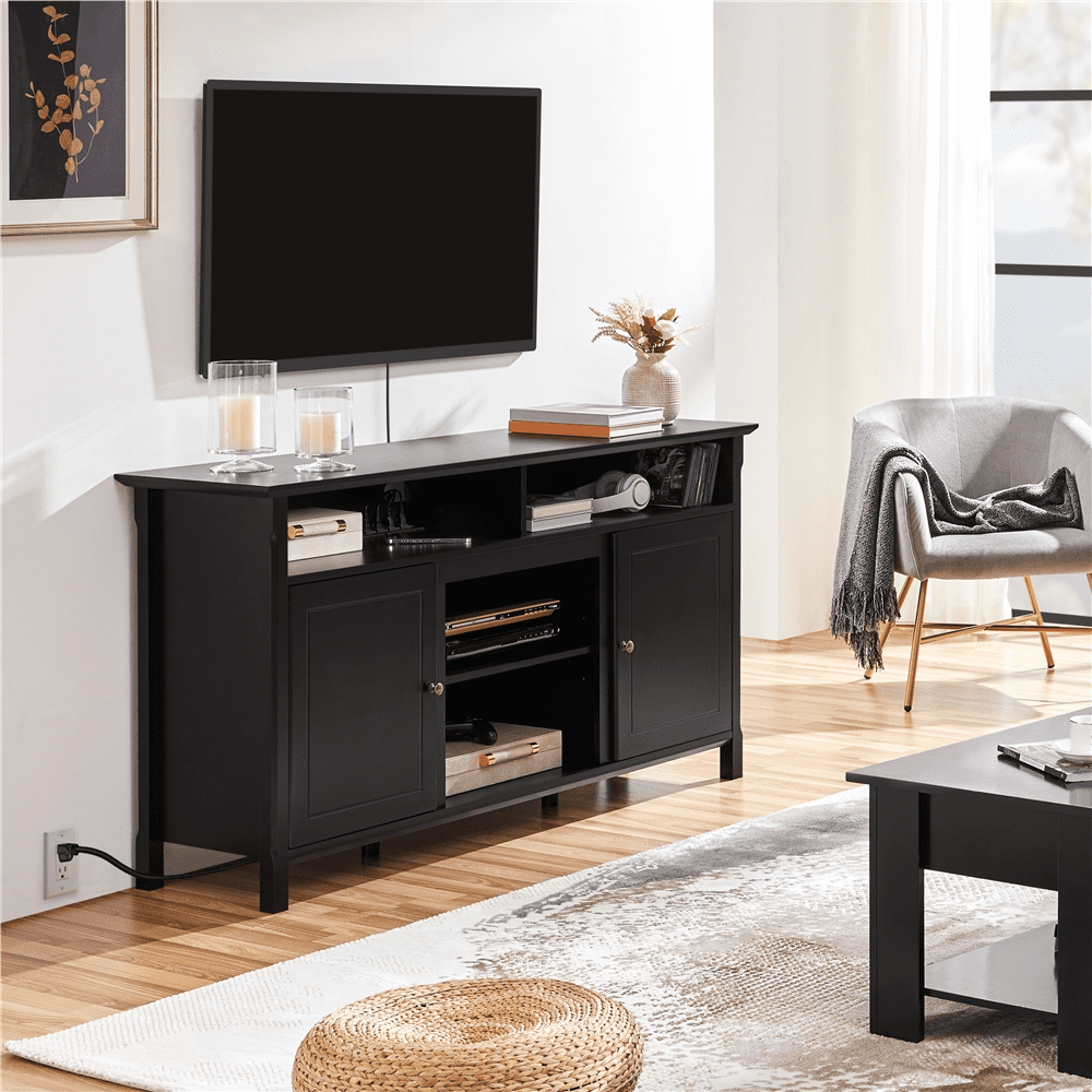 Renwick 58in Width Modern TV Stand TV Console with Power Outlet for TVs up to 65in, Black
