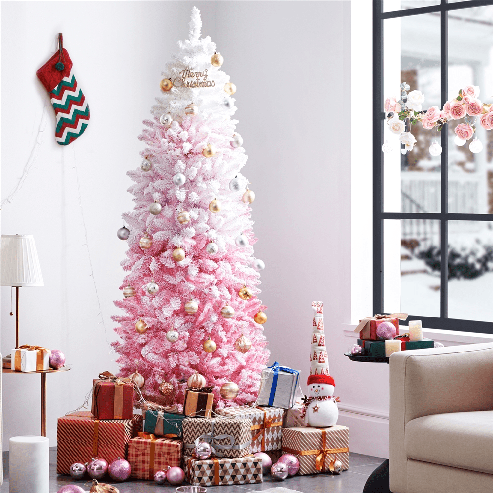 Renwick 6 Ft Artificial Christmas Tree with Foldable Stand,Pink Gradient