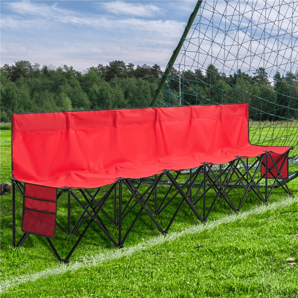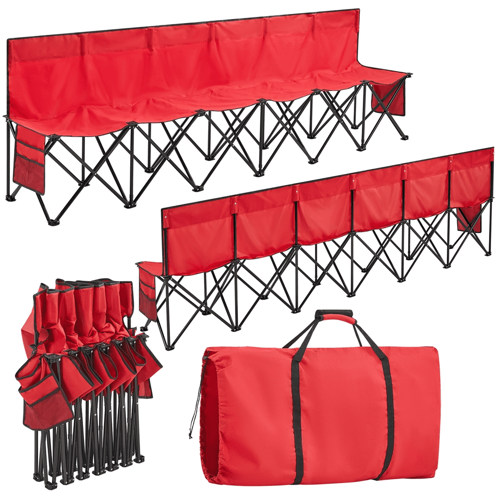 Renwick 6 Seats Portable Outdoor Folding Bench, Red : Color: Red Material: 600D Oxford Double Layer Fabric Dimension: 106” x 19” x 32” (L x W x H) Folded Size: 19” x 5.5”x 32”(L x W x H) Size for Each Seat: 18” x 19” (L x W) Frame Pipe Diameter: 0.6″ Max Weight Capacity:200 lb for each person each seat G.W.: 24 lb Portable Folding Bench Multifunctional