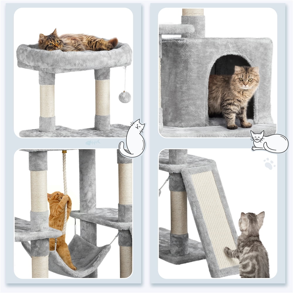 Renwick 63″ Height Large Plush Cat Tree Condos with Hammock, Light Gray