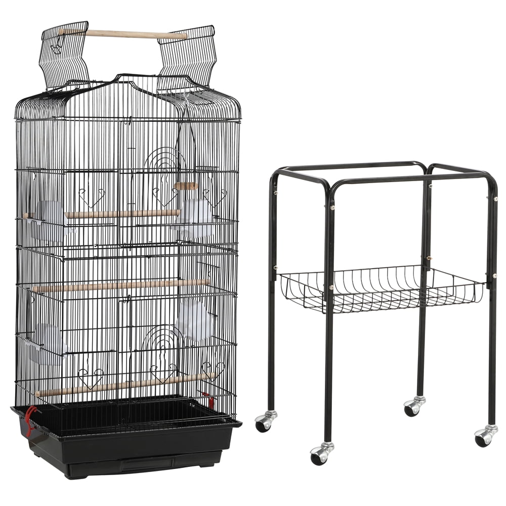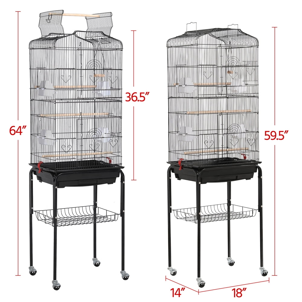 Renwick 64″ Rolling Metal Birdcage with Slide-Out Tray Open Top, Black