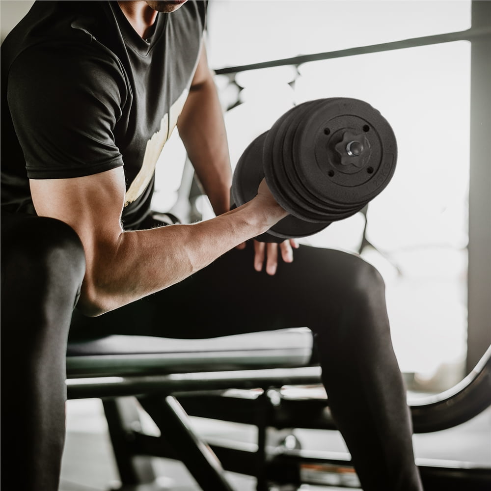 This selected dumbbell set is made of concrete weight plates and electroplated metal bars. It comes with different weight plates for you to adjust to your desirable dumbbell weight. This weight plate set features 2 pairs of spinlock collars and non-slip handles to provide you with a safe and secure exercise experience. It is great for your upper body workouts, which helps tone and sculpt your arms, shoulders, back and also strengthen your muscles. With this dumbbell set, you can exercise at home, in the office or any place at any time. Dumbbell type: Adjustable Dumbbell Set
