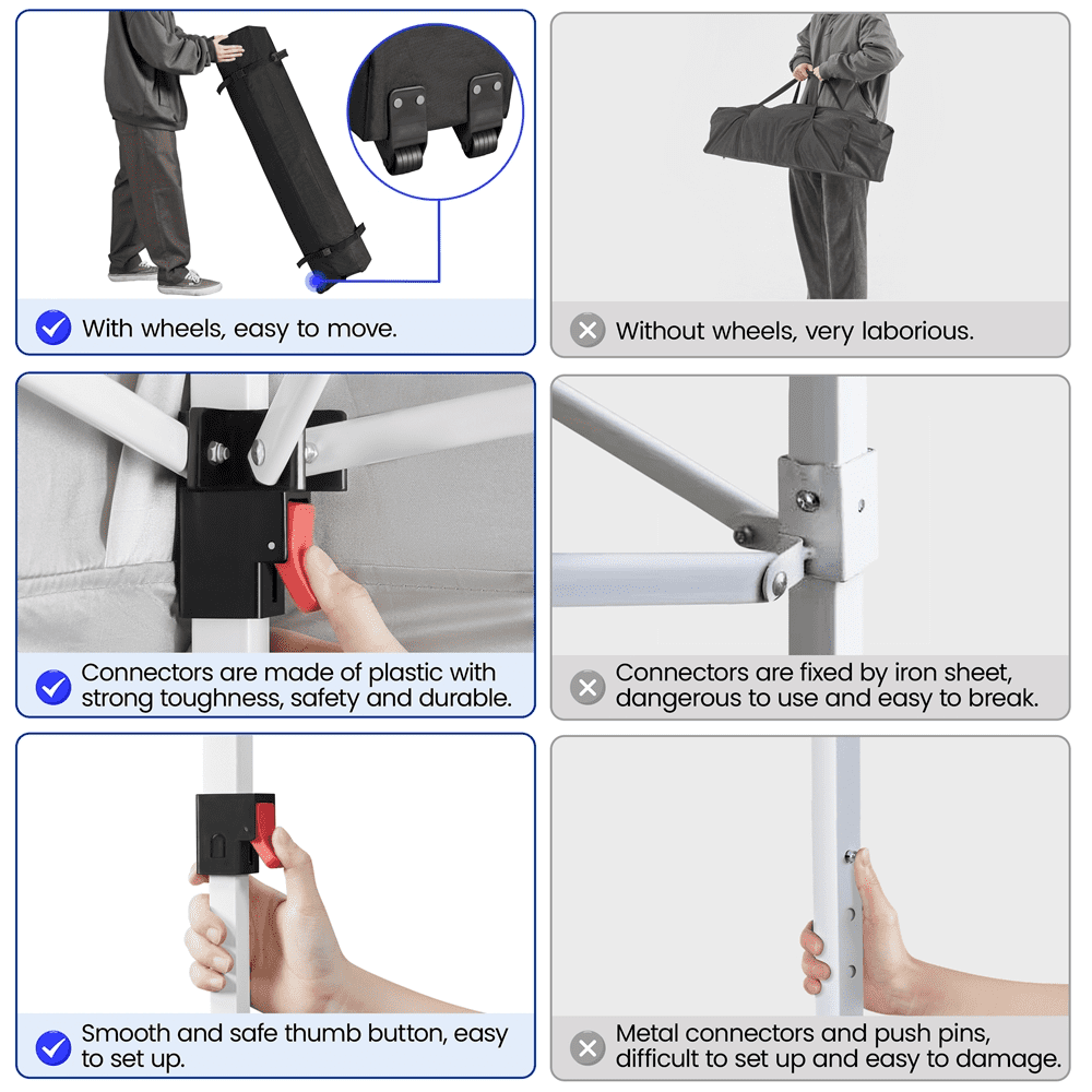 Renwick 8x8Ft Instant Pop Up Canopy Tent with Roller Bag & Sandbags, Blue: Canopy Color: Blue Materials: Powder-coated Steel, Polyester Fabric Assembled Dimensions: 8′ L × 8′ W × 8.3-8.9′ H Adjustable Canopy Height: 8.3′, 8.6′, 8.9′ Roller Bag: 10″L × 8″W × 45.3″H Item Weight: 26.4 lb Shipping Weight: 29.1 lb Robust Construction Additional Wind-resistant Design