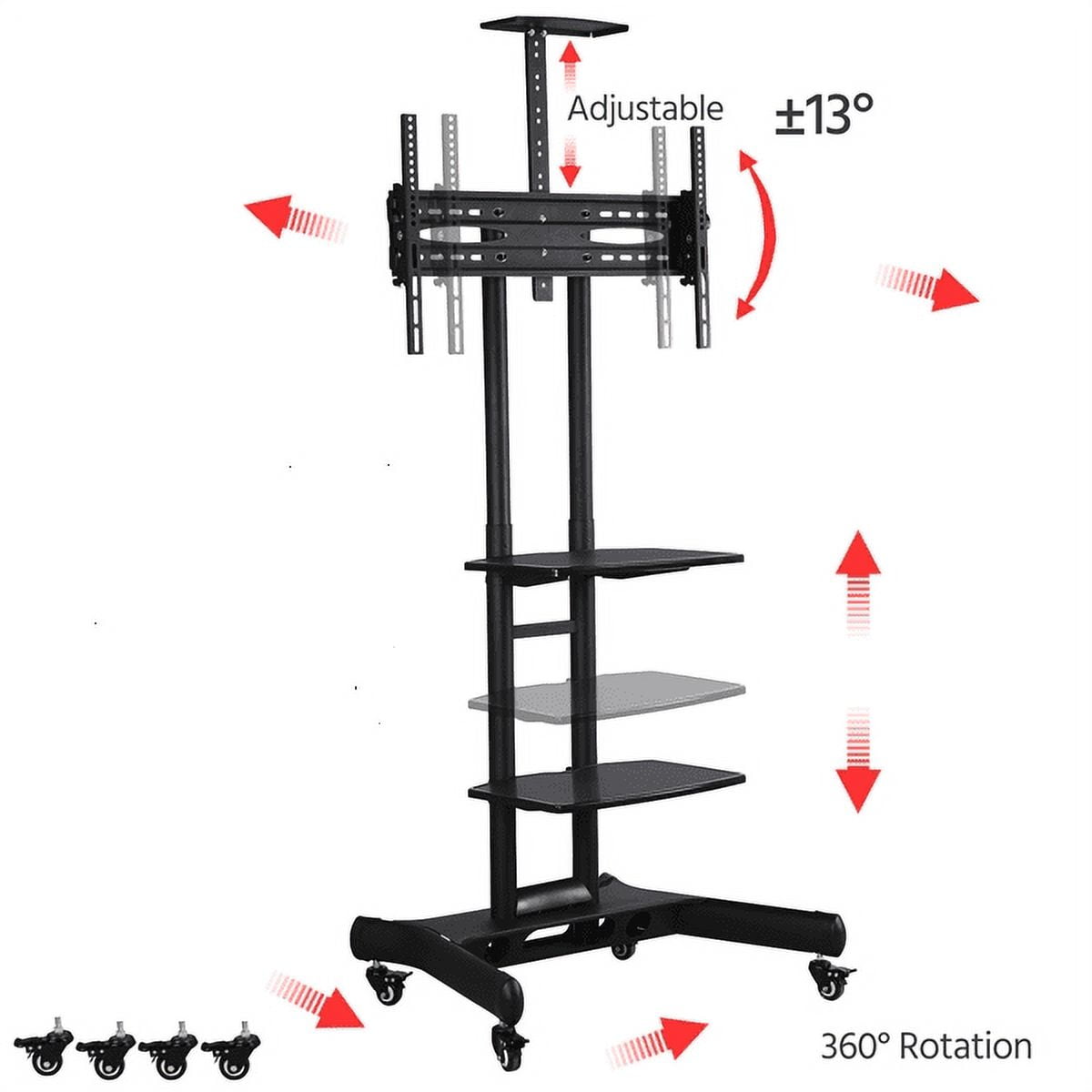 Renwick Adjustable 3 Tier Mobile TV Stand for for 32in to 75in LCD/LED Flat Screens, Black