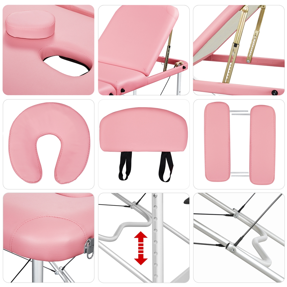 Renwick Adjustable Professional Massage Bed Max. Load Bearing Static 551.2lb, Pink