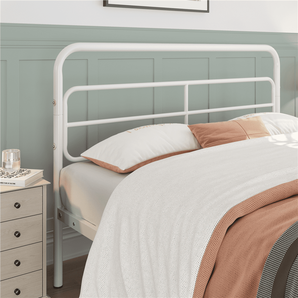 Renwick Aidan Modern Geometric Patterned Metal Bed, Queen,White