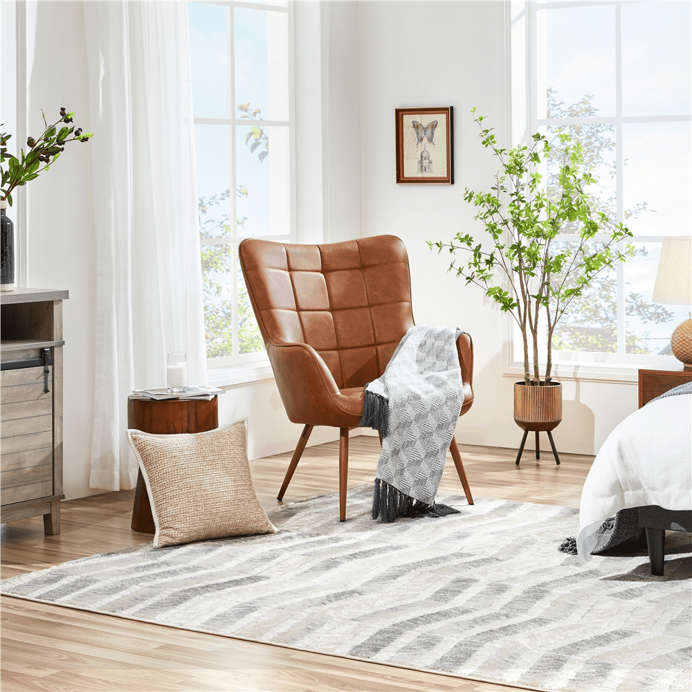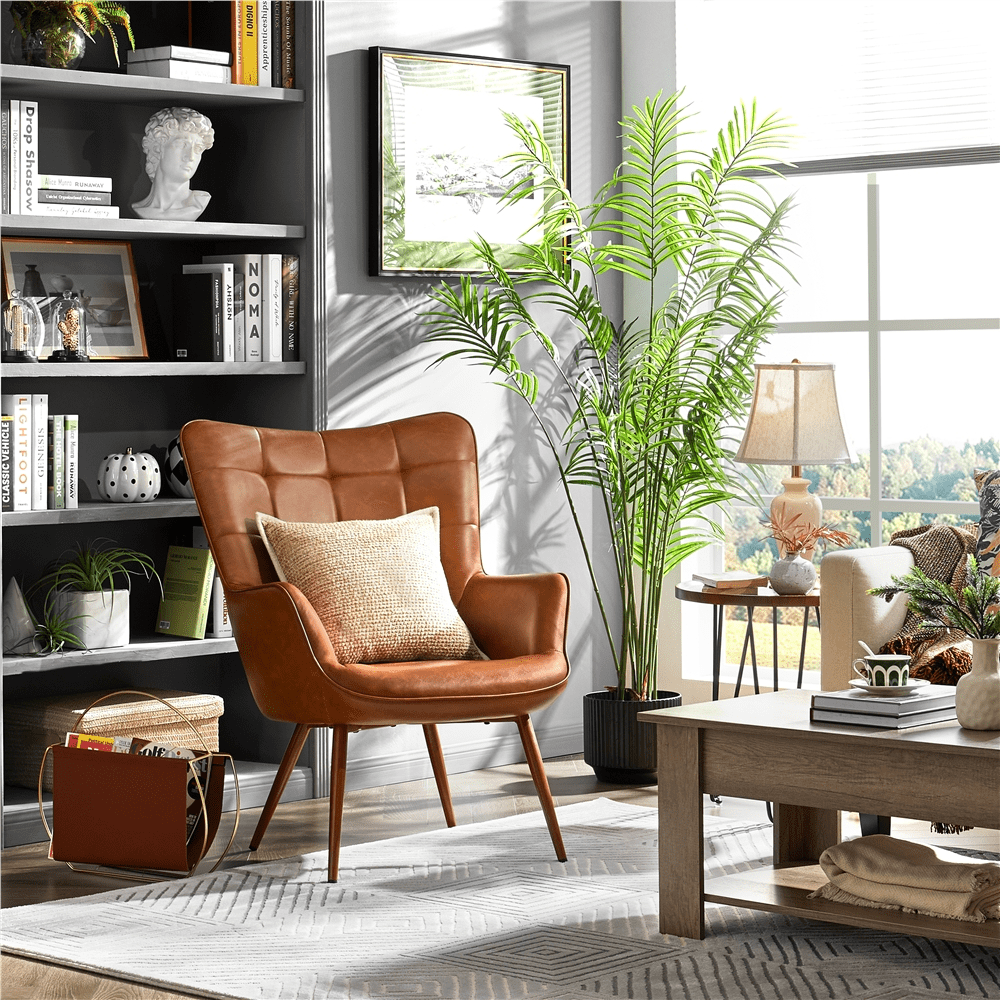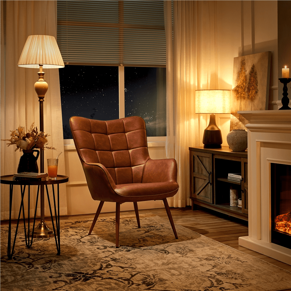 Renwick Contemporary Faux Leather Wingback Accent Chair for Livingroom, Brown