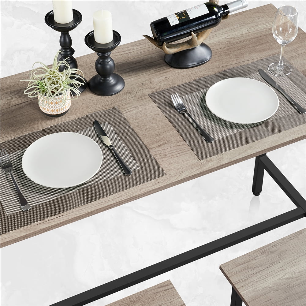 Sturdy Construction: This small kitchen table set is constructed of thick particle boards and a strong metal frame, making it capable of holding up to 221 lb for the table, and another 300 lb for each chair Spacious & Comfortable: The generous table, measuring 47.5″ L and 24″ W, allows you and your partner to eat a big breakfast or host a small party with several close friends, and it can also be used to store plates, books, and other daily necessities when not in use. Each stool includes a metal footrest for added comfort Versatile Applications: This kitchen table set flawlessly combines practical use and a stylish look. Each set includes one table and two stools, which is ideal for the home bar, dining room, kitchen, living room, apartment, studio, and other small spaces Stylish Your Dining Area: Want to uplift your dining area? This kitchen table set takes a rustic vibe when the wooden surface meets slim-profile metal legs, making your room sleek but chic. The wooden surface embellished with wood-like grain brings a touch of natural warmth to your dining nook Adjustable Foot Pads: The adjustable foot pads on this bar table and stools set provide great stability on uneven surfaces and help prevent accidental scratches and scuffs on your floors Specifications: Quantity: 3 (1 table & 2 stools); Materials: Particle Board, Iron; Color: Gray + Black; Table Dimensions: 47.5″ L × 24″ W × 35.5″ H; Stool Dimensions: 16″ W × 12″ D × 25.5″ H; Maximum Weight Capacity: Table: 221 lb; Stool: 300 lb