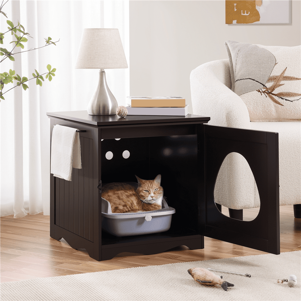 Renwick Enclosed Cat Litter Box End Table, Espresso
