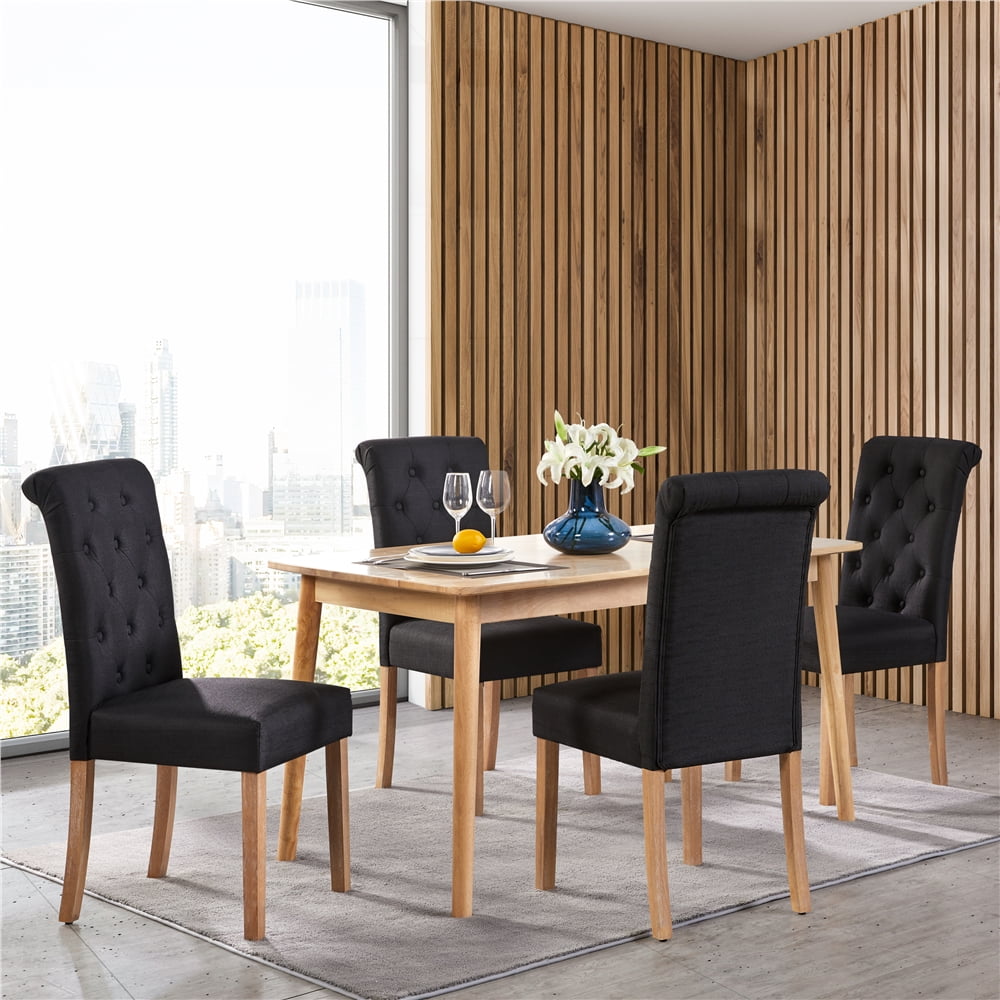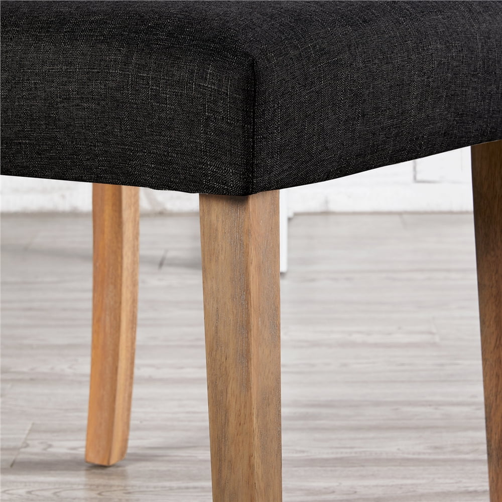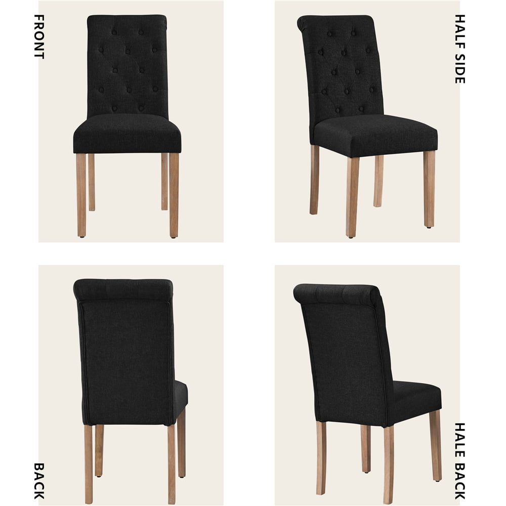 Heavy-duty Dining Chairs: Each foam-padded dining chair has a solid structure with a high weight capacity of up to 276 lb, and the rubberwood legs give you strong support Curved Backrest: The top of the backrest is slightly curved, elegant and graceful. It better fits your neck and is very comfortable to rest your head on Adjustable Foot Pads: To prevent skidding and protect the floor, this set of 2 dining chairs is equipped with adjustable foot pads that can adapt to uneven ground Easy to Match: With the delicate design, this set of 2 armless side chairs can coordinate with any other home furniture in your room. Try to get more pieces if there’s a big family in your home. It will be great when you gather and have dinner or a party Lightweight & Easy-to-move: Each kitchen chair weighs only 14 lb, making it easy for you to move them without much effort when cleaning the floor or adjusting their placement as needed Specifications: Quantity: 2; Color: Black; Materials: Rubberwood, Polyester Fabric, Foam, Sinuous Spring, Non-woven Fabrics; Assembled Dimensions: 18″ W × 24.5″ D × 39″ H; Seat Width: 18″; Seat Depth: 17″; Seat Height: 20″; Maximum Weight Capacity: 276 lb