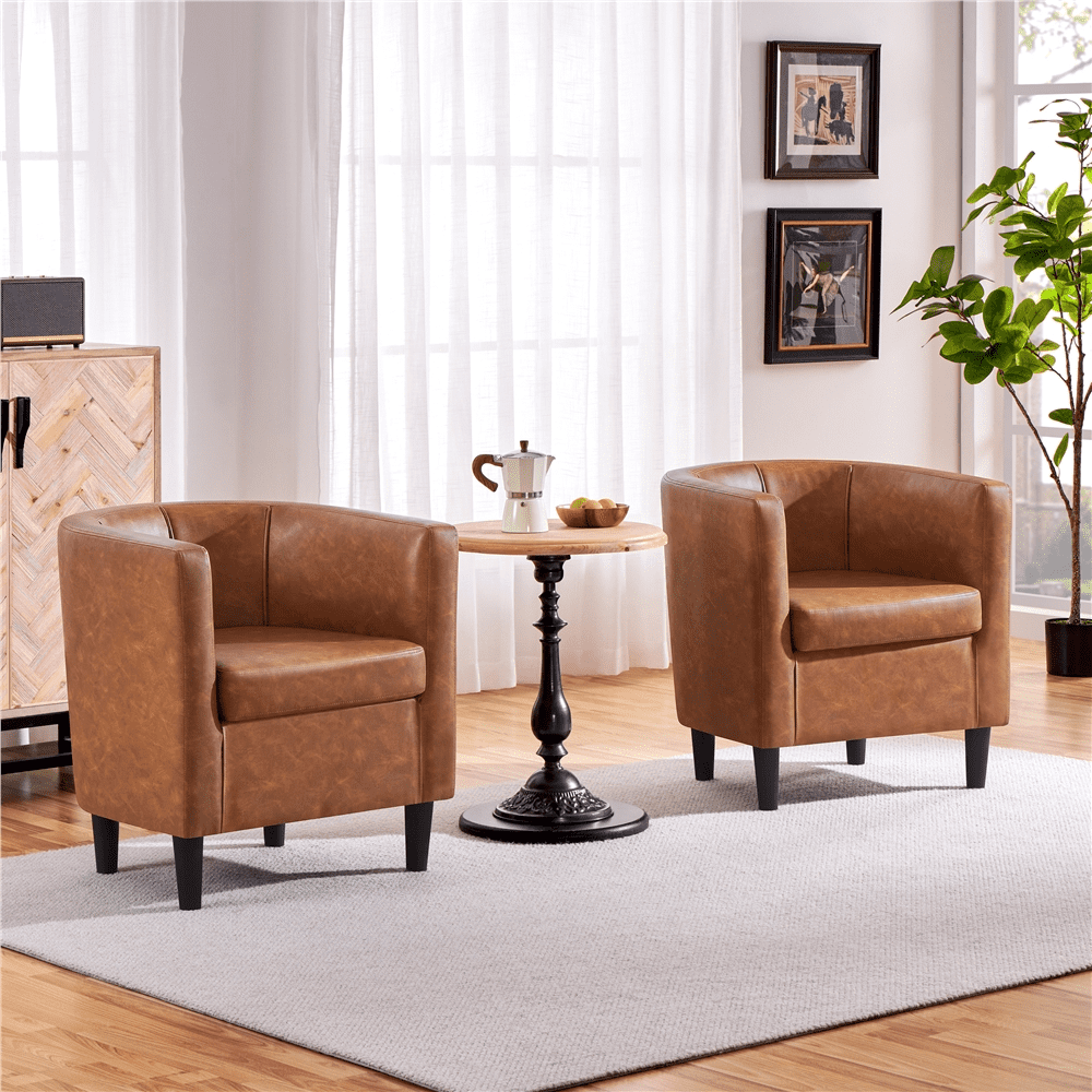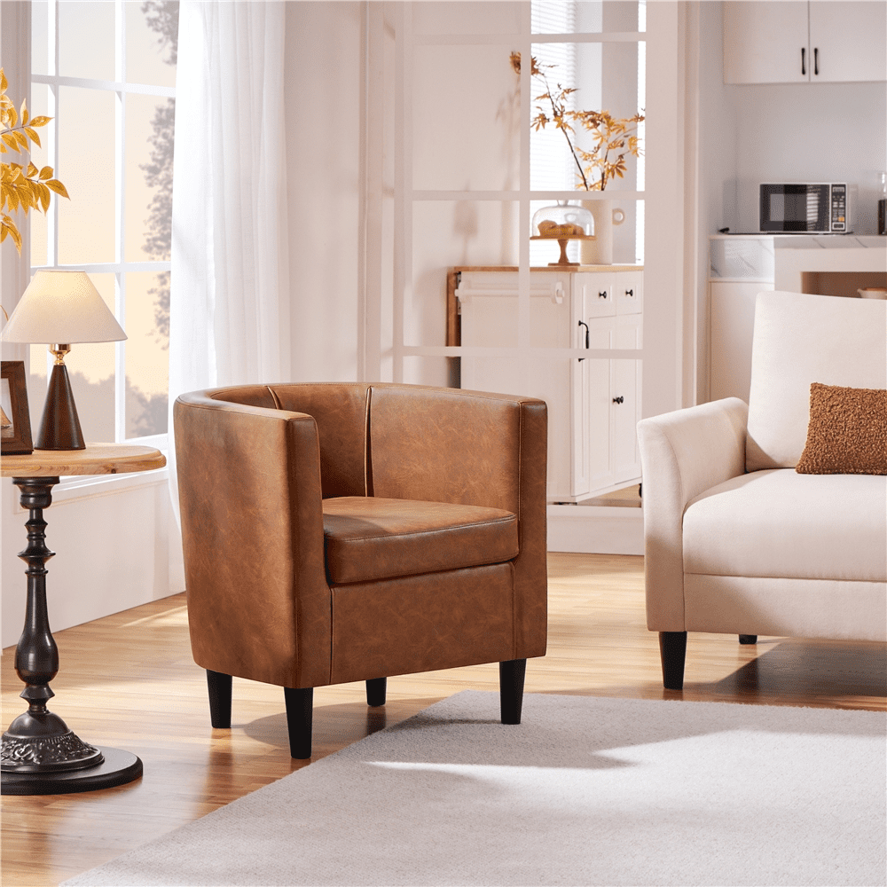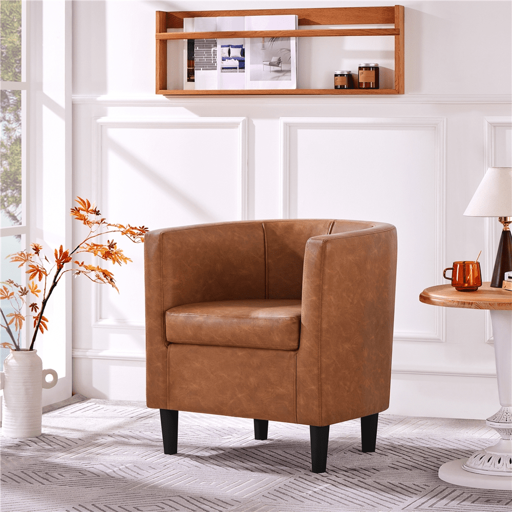 Renwick Faux Leather Upholstered Club Chair for Livingroom, Brown
