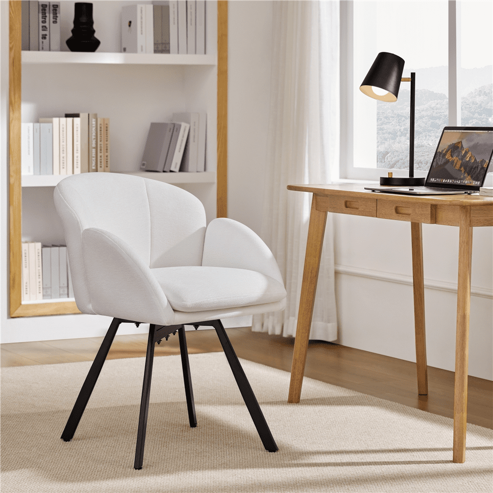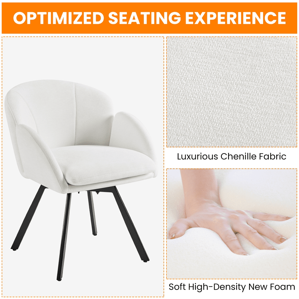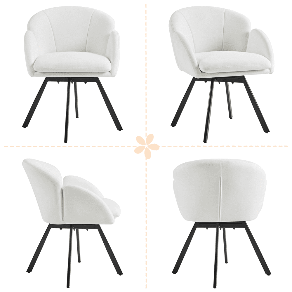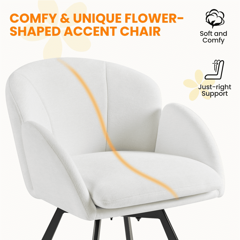 Renwick Flower Shaped Swivel Accent Chair with Removable Seat Cushion for Livingroom, White