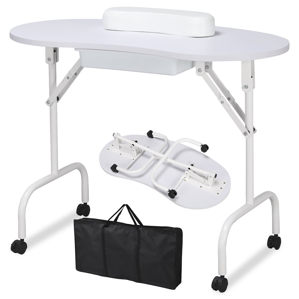Renwick Folding Manicure Table with Wrist Cushion Bag,White