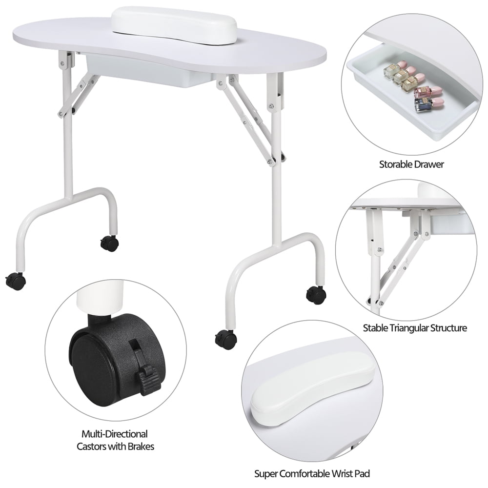 This foldable and portable manicure station is made of high quality material, which ensures its long life span. It is perfect for nail beauticians and convenient for storage with a carry bag. What’s more, the manicure table is designed with 4 rolling wheels for easy movement. Its drawer is used to keep your small accessories.