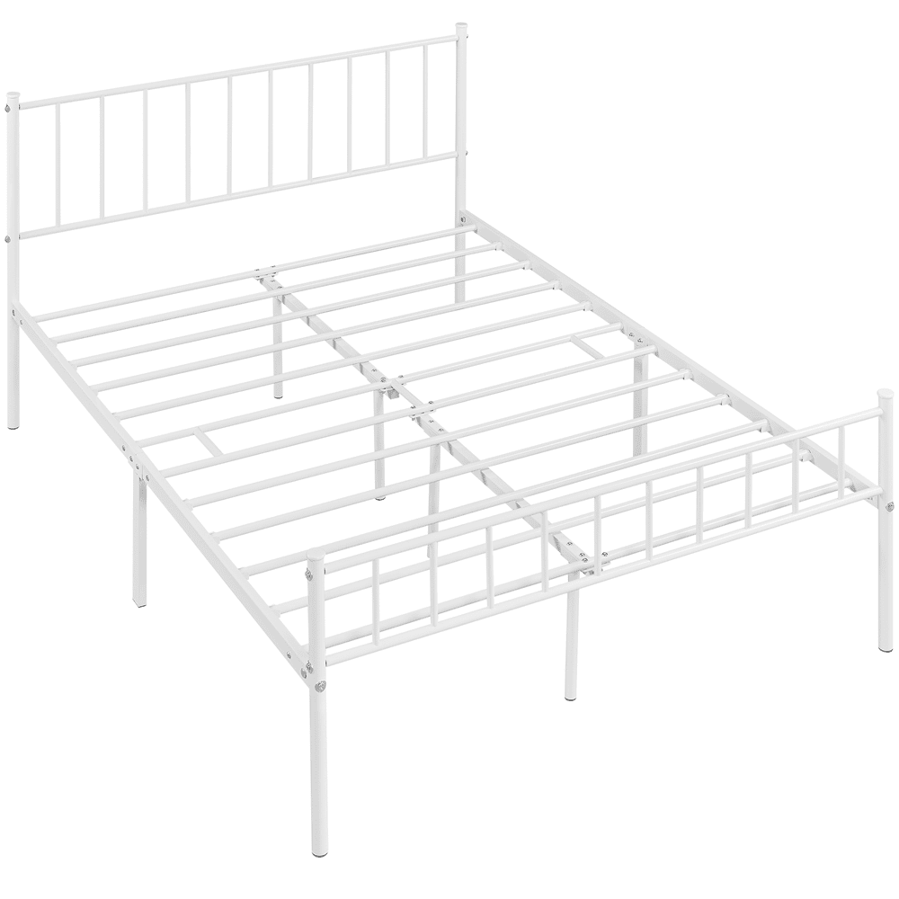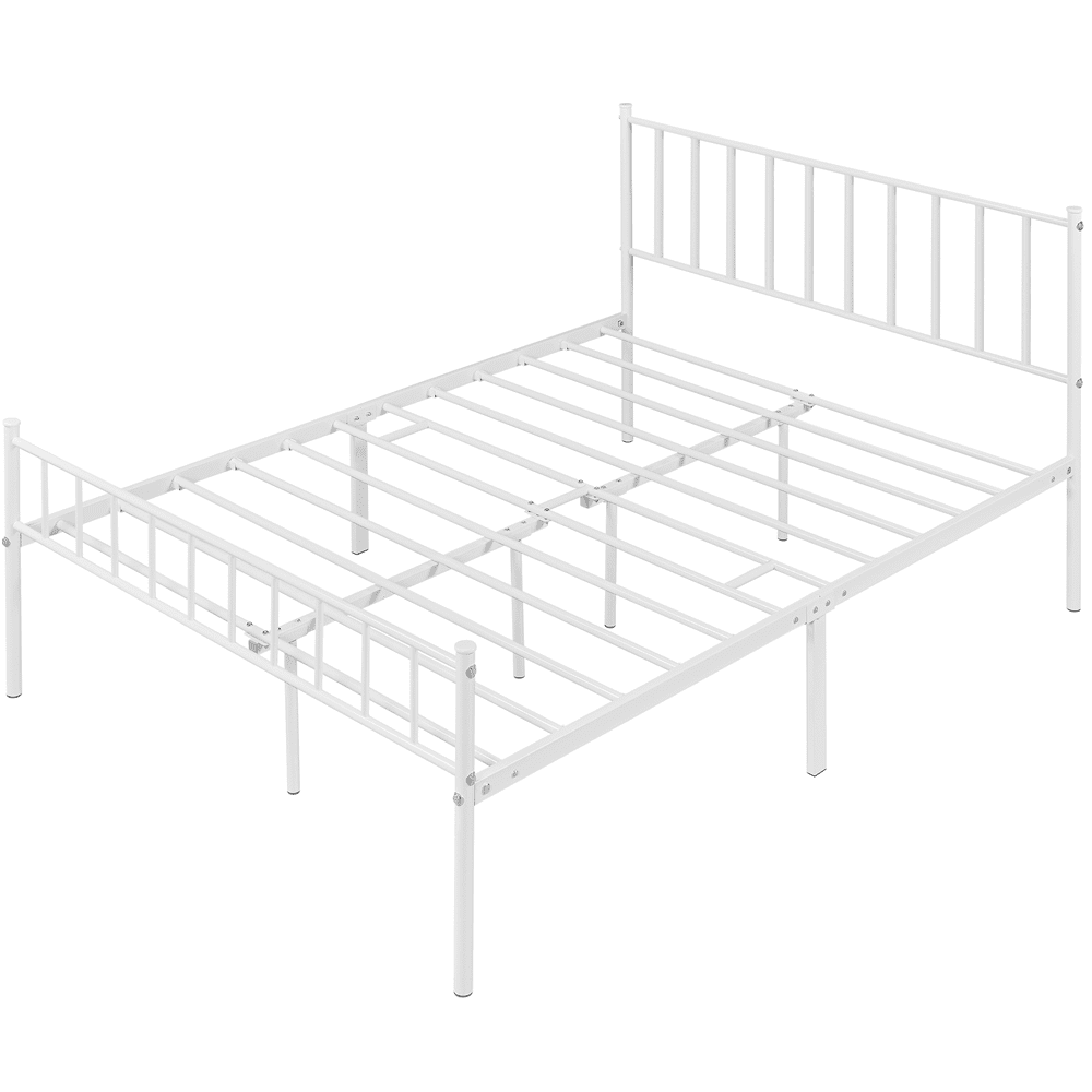 Renwick Justin Metal Platform Bed with Spindle Headboard and Footboard, Queen Size, White