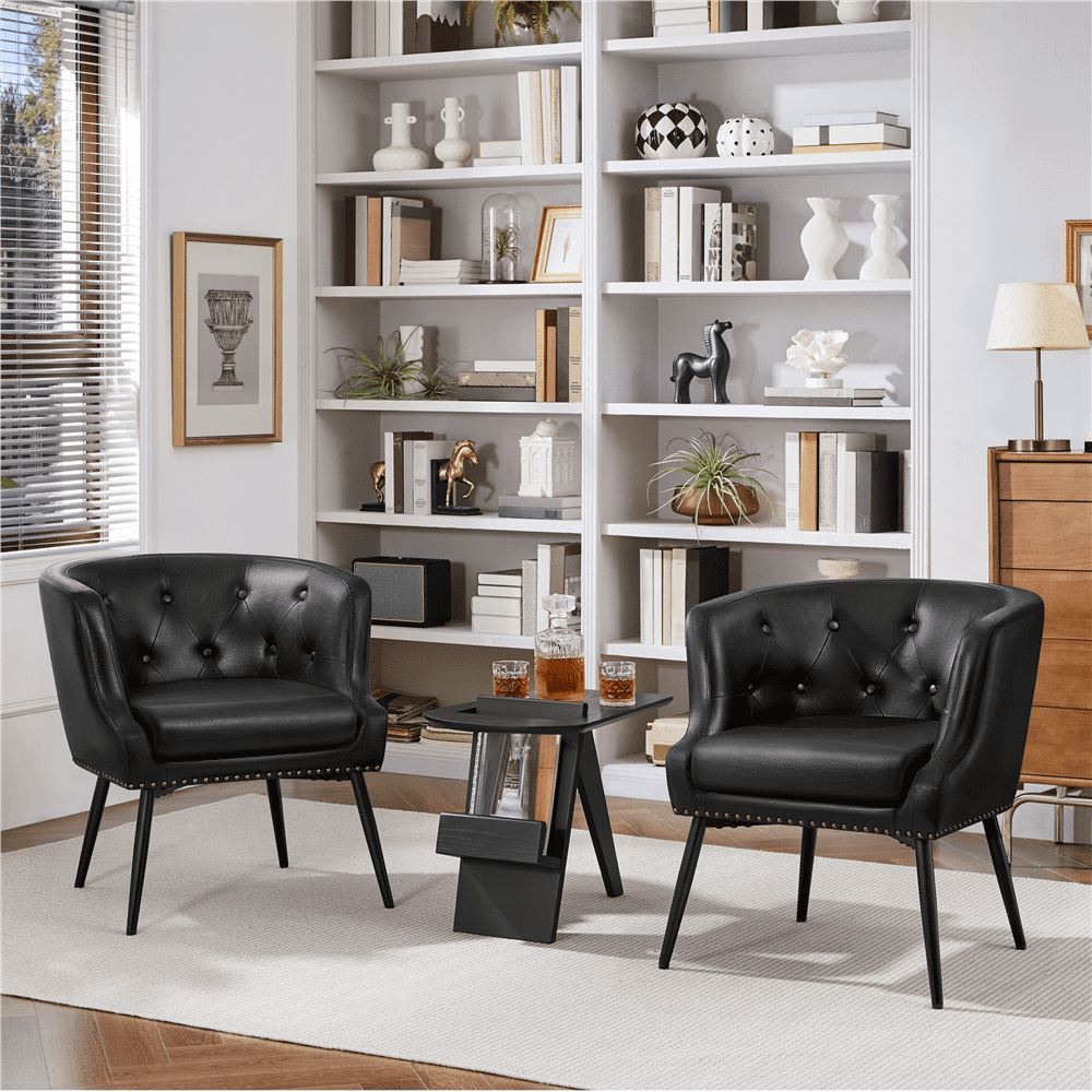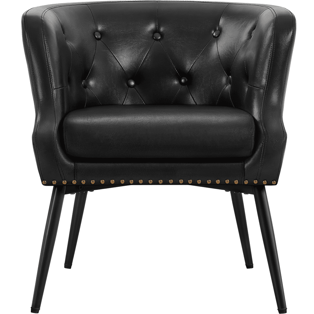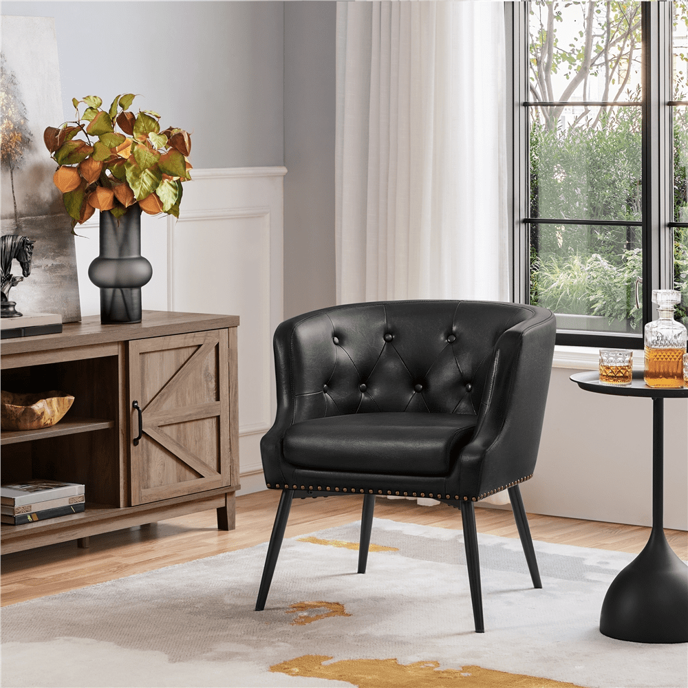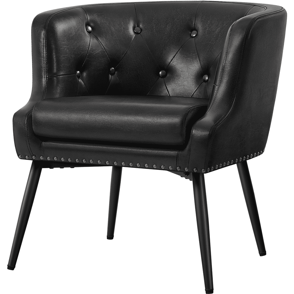 Renwick Modern Button Tufted Faux Leather Barrel Accent Chair,Black