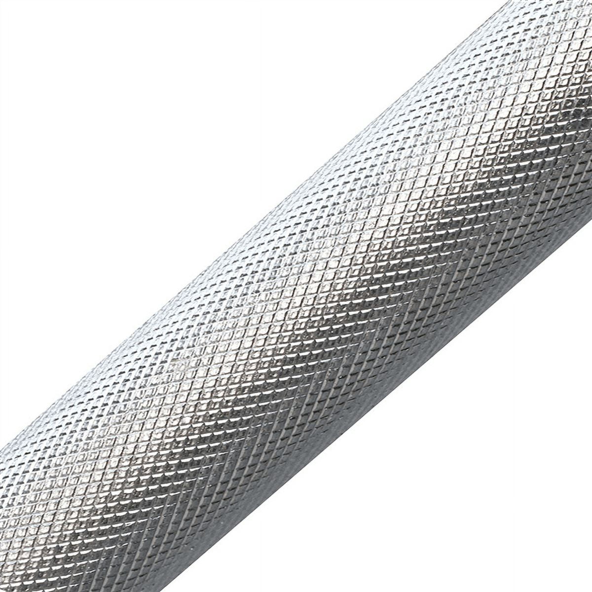 This Easyfashion 7′ Olympic delivers the perfect combination of value, construction, sleeve space, spin, and knurl. The knurl is right in the middle of the spectrum and provides just enough grip without being sharp or painful. It is perfect for deadlifts, overhead pressing, rows, and bench work. To prevent the weight plates from falling off during the exercise, they are fastened with lockable collars.