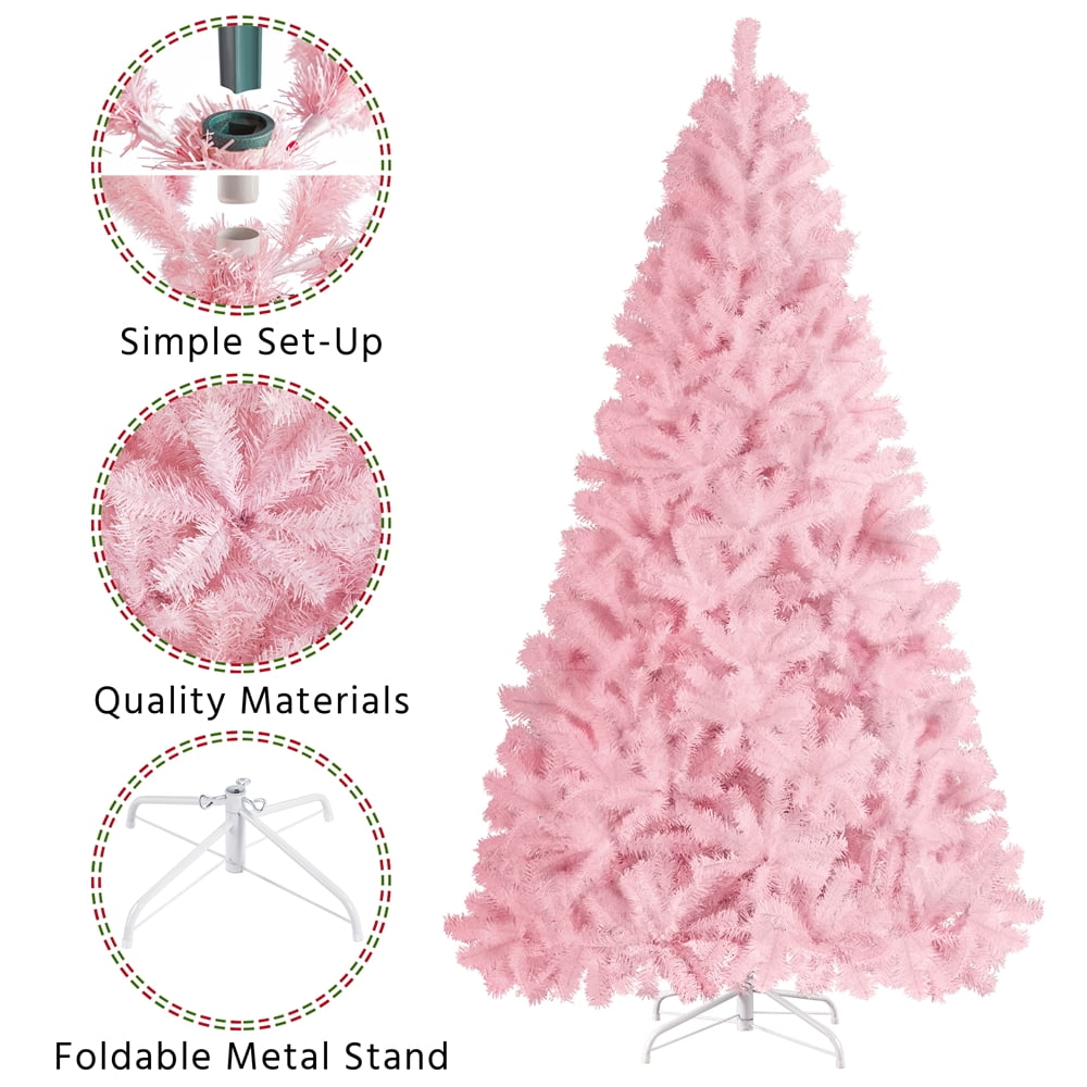 Easyfashion Here is a stunning Christmas gift for all pinklefins, a Christmas tree that comes with pink branches and leaves. The unique cherry blossom pink is romantic and subdued, suitable for most events that are princess/fairy themed. Premium PVC branches and tips are flexible to set and fluff out. Fire-resistant feature assured safety usage: Foldable stand is easy to store and pack; Non-skid rubber feet keep the tree stand in place; Versatile color and design make this holiday decoration wide applicable. Best of all, the tips do not fall on the floor compared to a real tree.