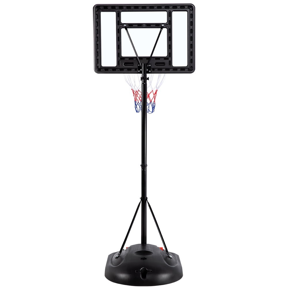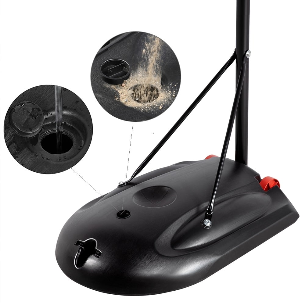 Constructed of non-toxic antirust painted round iron post measured 1.5inch in diameter, shatterproof PVC and PE backboard and base and nylon net, this basketball hoop system adapts quality materials to ensure lightweight and good durability as well. Weight base with wheels: The base measured 29 x 21.7″ can be filled with water or sand to guarantee good stability and safety for your every shot. Upgraded stability: We listened to our customers’ reviews and upgraded the stability of this basketball hoop system.