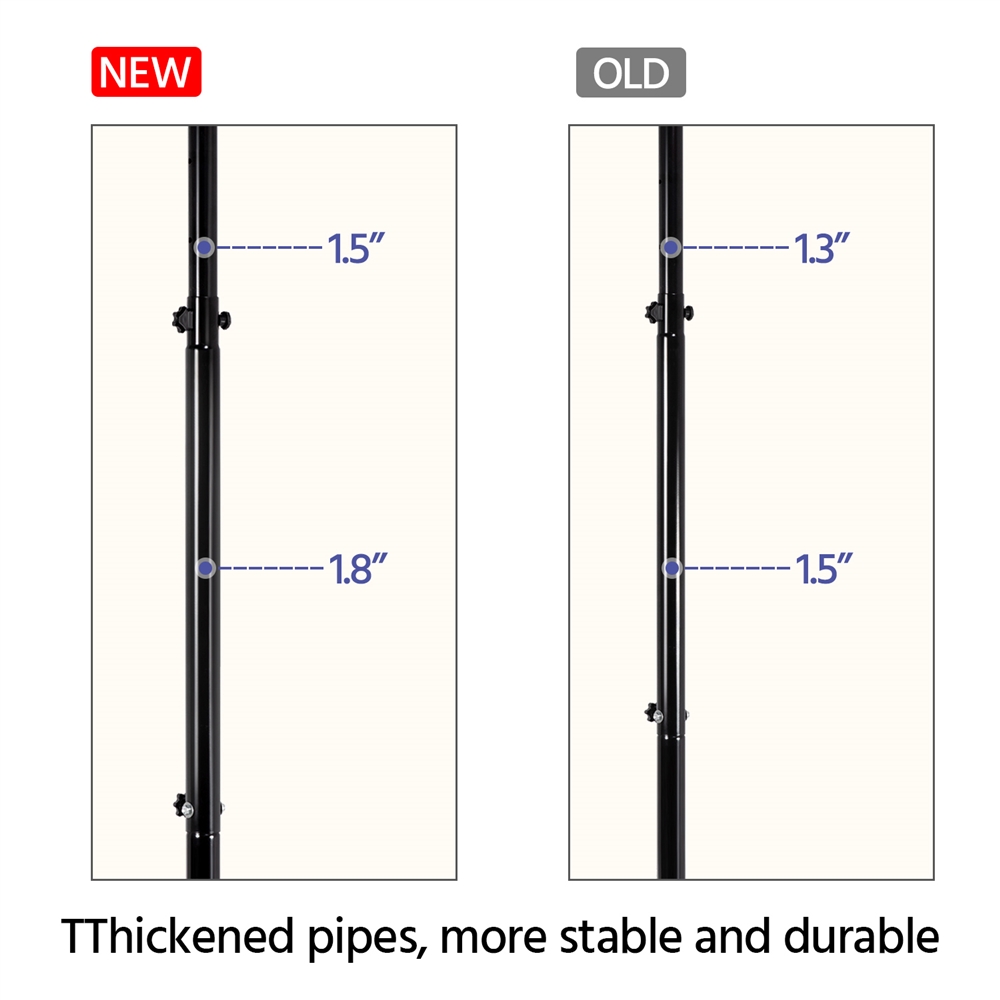 Compared with the previous oval posts, this new stand uses round posts and has a knob for extra stability. Height-adjustable: Features 7 pairs of holes for height adjustments, the telescoping post can be easily adjusted from 7′ to 8.2′ in 4″ increments. This height-adjustable basketball hoop can be set at 8.2′ high for the courtside play or lowered to 7′ for kids or indoor basketball games.
