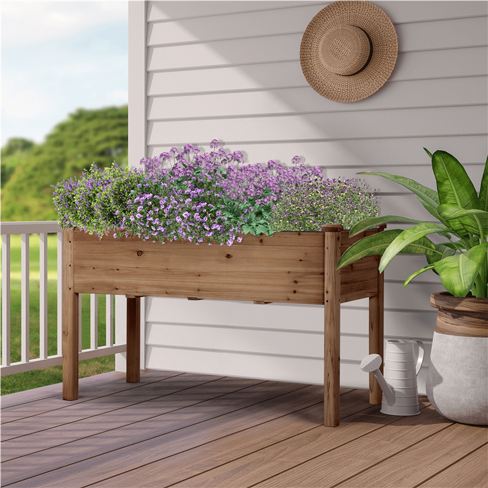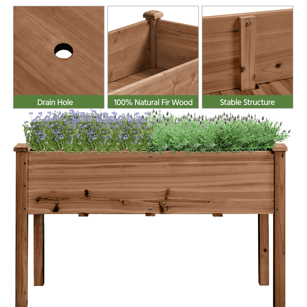 Transform your backyard into a well-organized garden with this natural, elevated raised garden bed. Crafted from solid fir wood, it offers both safety and durability for long-lasting use. The elevated design makes it ideal for those with back or knee pain, allowing for easy gardening without the need to bend down. Assembly is straightforward with all necessary fittings and a clear instruction manual included. Built to endure, this wooden garden bed requires minimal care and maintenance, ensuring it will serve you for years to come.