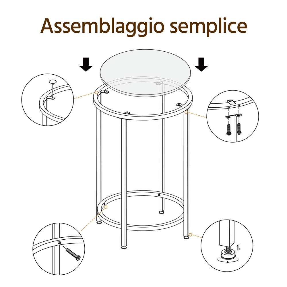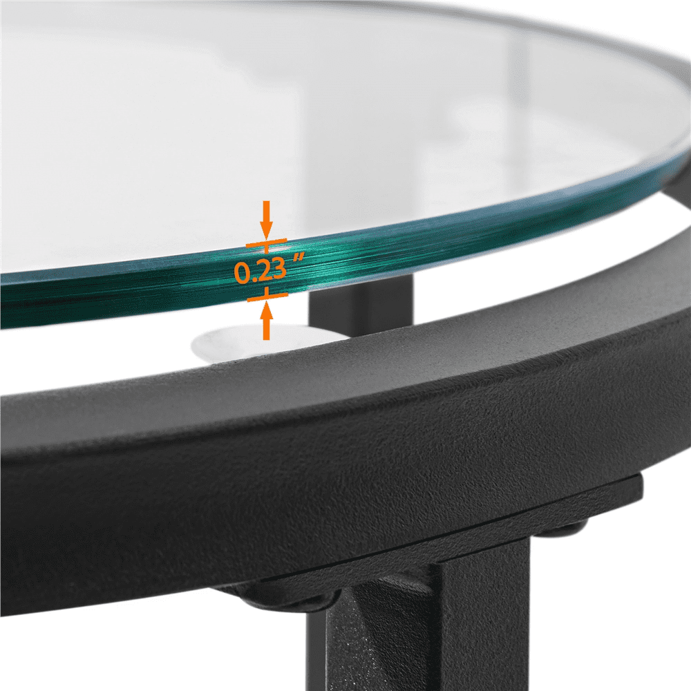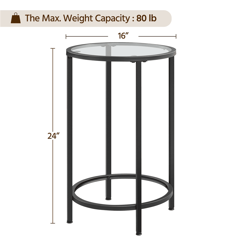 Selected Materials: Constructed from 6mm thick durable tempered glass and supported by powder-coated iron legs, this round accent table offers enhanced stability and durability, with the capacity to support up to 88 lb. Easy Maintenance: With its waterproof powder-coated iron frame and tempered glass tabletop, maintaining cleanliness is a breeze—just wipe it down with a damp cloth. Open Design Tabletop: Featuring an open round glass tabletop, this side table offers a practical area for showcasing and storing various items. Ideal for exhibiting decorations or storing essentials within reach. Easy Assembly: Comprehensive instructions and all necessary tools are included for a quick setup. Assembly can be completed in merely 4 easy steps.
