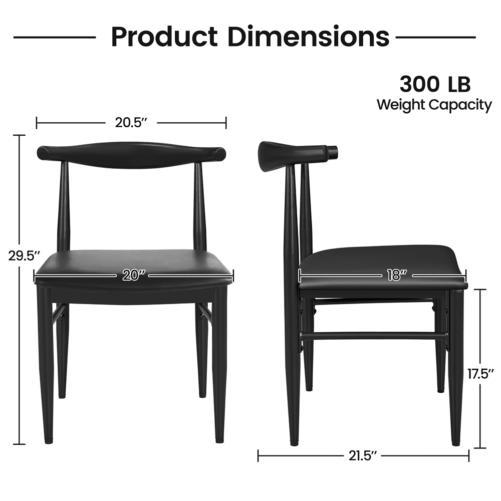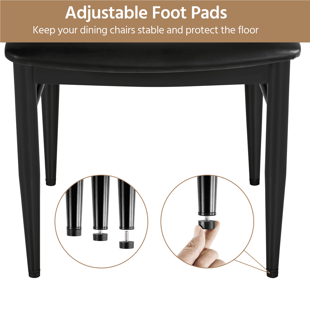 Wood-like metal legs: Our dining chairs feature metal legs covered with wood-like veneer, which makes the dining chairs durable, solid, and good-looking. Adjustable protective footpads: There is a protective footpad at the bottom of each metal leg. These protective footpads are adjustable to adapt to the uneven floor. Easy matching chairs: These modern dining chairs are sold in 2 pieces together with good value. They go well with other home furniture and decoration. Armless yet with backrest: To ease the sitting experience, we design this type of chair without armrests. Illustrated instructions: The matching accessories and detailed instructions are included in the package. Exquisite design: We choose the right style and color for each chair to create unique and pleasing furniture.