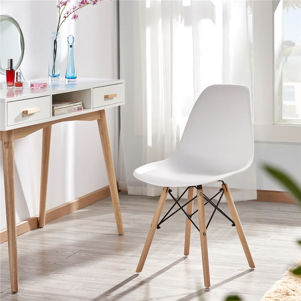 Renwick Set of 4 Modern Dining Chairs with Wood Leg, White