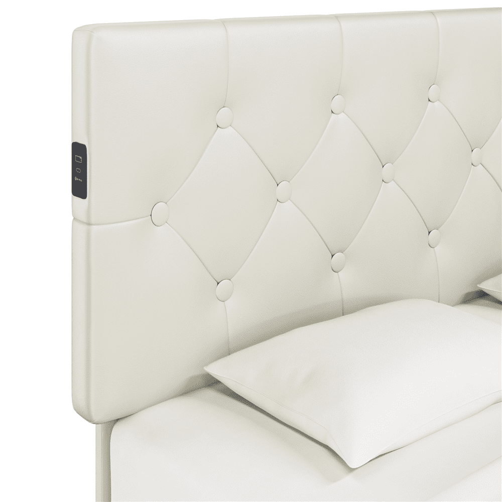 Renwick Upholstered Queen Bed with 4 Storage Drawers and USB Ports, Full, Beige