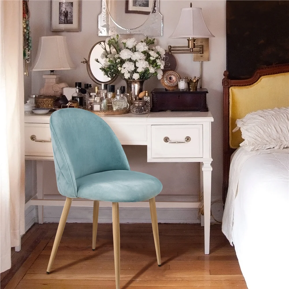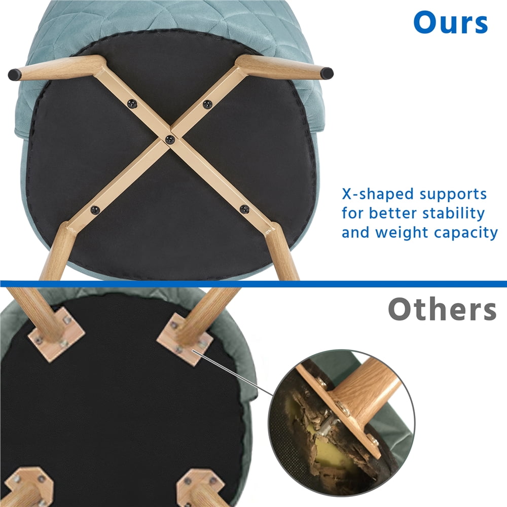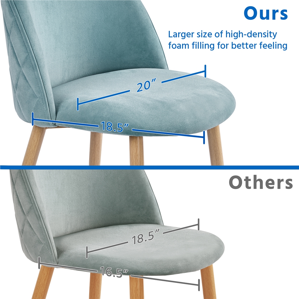 This set of two coastal dining chairs are the perfect piece to complete your kitchen or dining room. The sleek and chic design fits in with any and all home decor styles. The back side of the back rest has diamond pattern detailed stitching to add to the elegant, elevated look of the chairs. The soft velvet covering makes these chairs comfortable and cozy to sit on for hours. The mid-back seat back height provides ample support along with the sturdy and durable wooden legs. Our strong framing guarantees that these chairs will last a long time. We have also included protective footpads to prevent any damage to your kitchen floors. Simple assembly is required and detailed instructions are included.