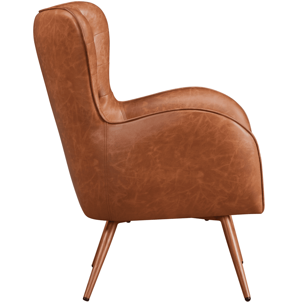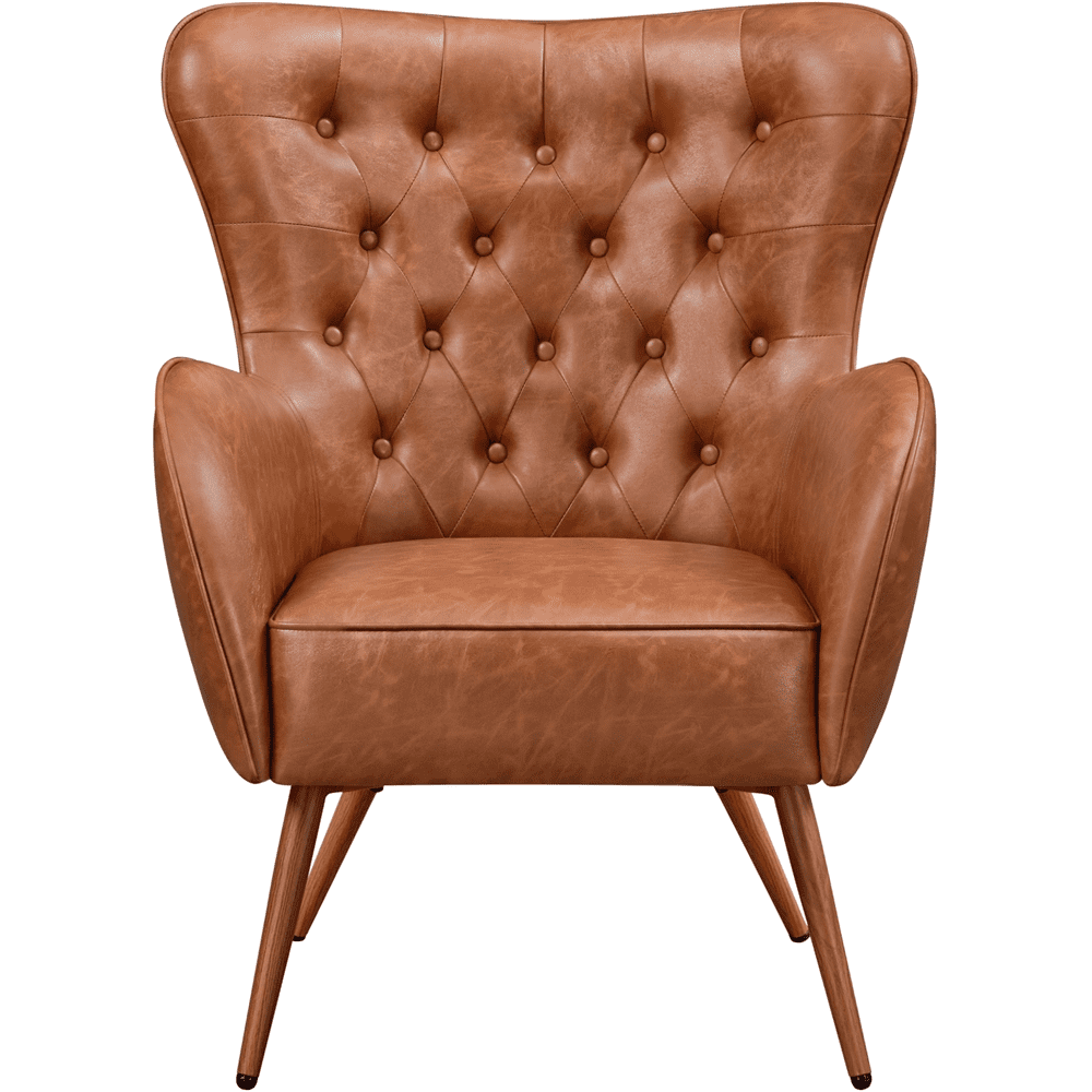 Renwick Vintage Faux Leather Accent Chair with Diamond Button for Living Room, Brown