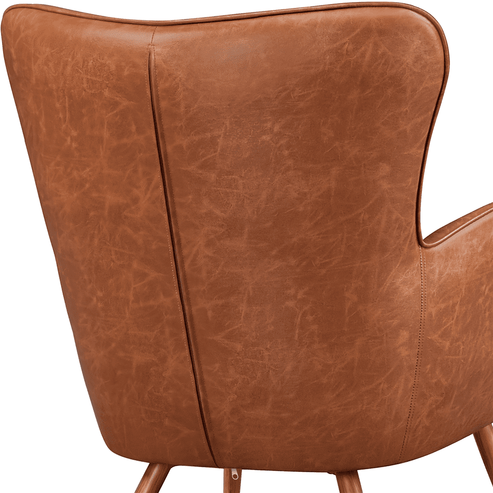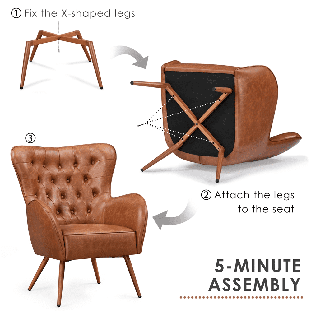 The integral structure of this accent armchair not only emulates a traditional silhouette but also strengthens overall sturdiness. Crafted from CARB-compliant engineered wood frame, supple faux leather upholstery, robust pocket coils and high-resiliency foam, the chair bears a high weight capacity of 300 lb. The pocket coil seat is made of ultra-durable steel materials that bounce back and return to their original shapes quickly, leaving no dents even after hours of sitting. Stuffed with soft, high-resiliency foam on top and to each side of the coils, it will drive your comfort to the next level. The 21” high back with wing sides and the 20.5″ deep seat can cuddle your varying sitting postures (curl/cross-legged, lean on one side, etc.). The pocket coil cushion provides elongated plushness and support while holding a long conversation or binge-watching the latest TV series. This faux leather accent chair is a striking addition to both private residences and public reception areas, such as living rooms, bedrooms, lounges, offices, Cafés, and more.