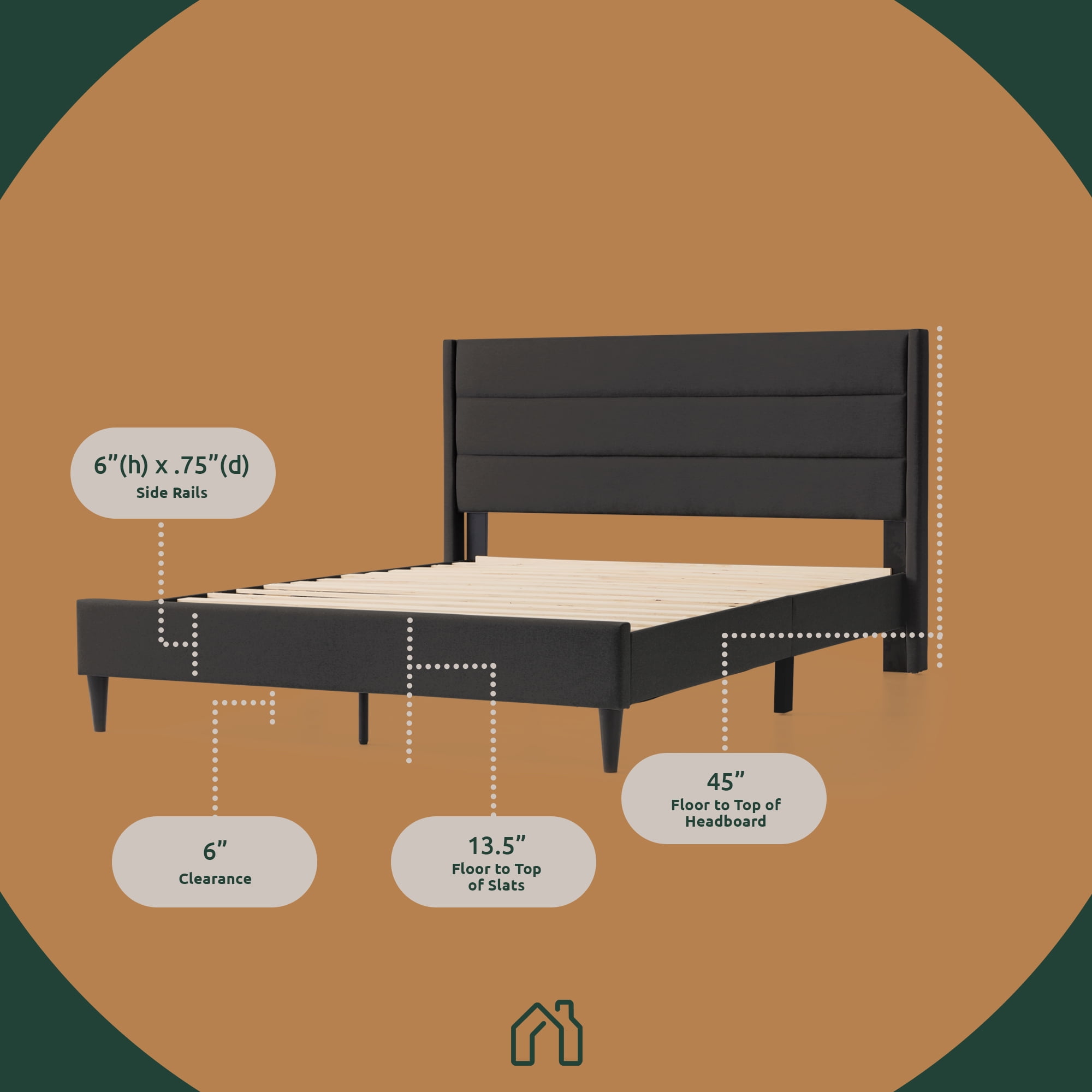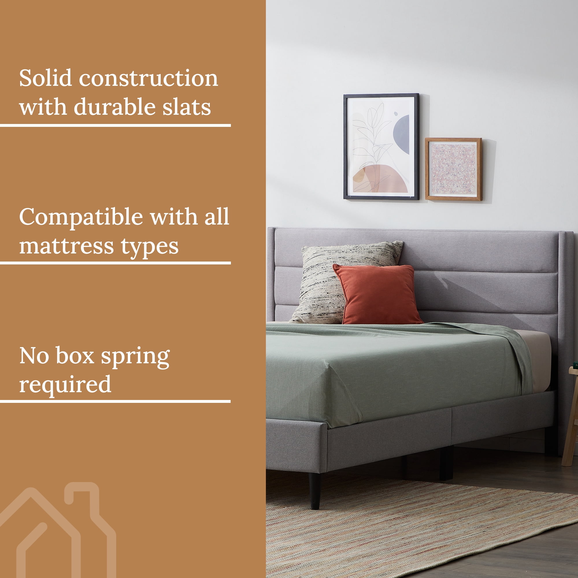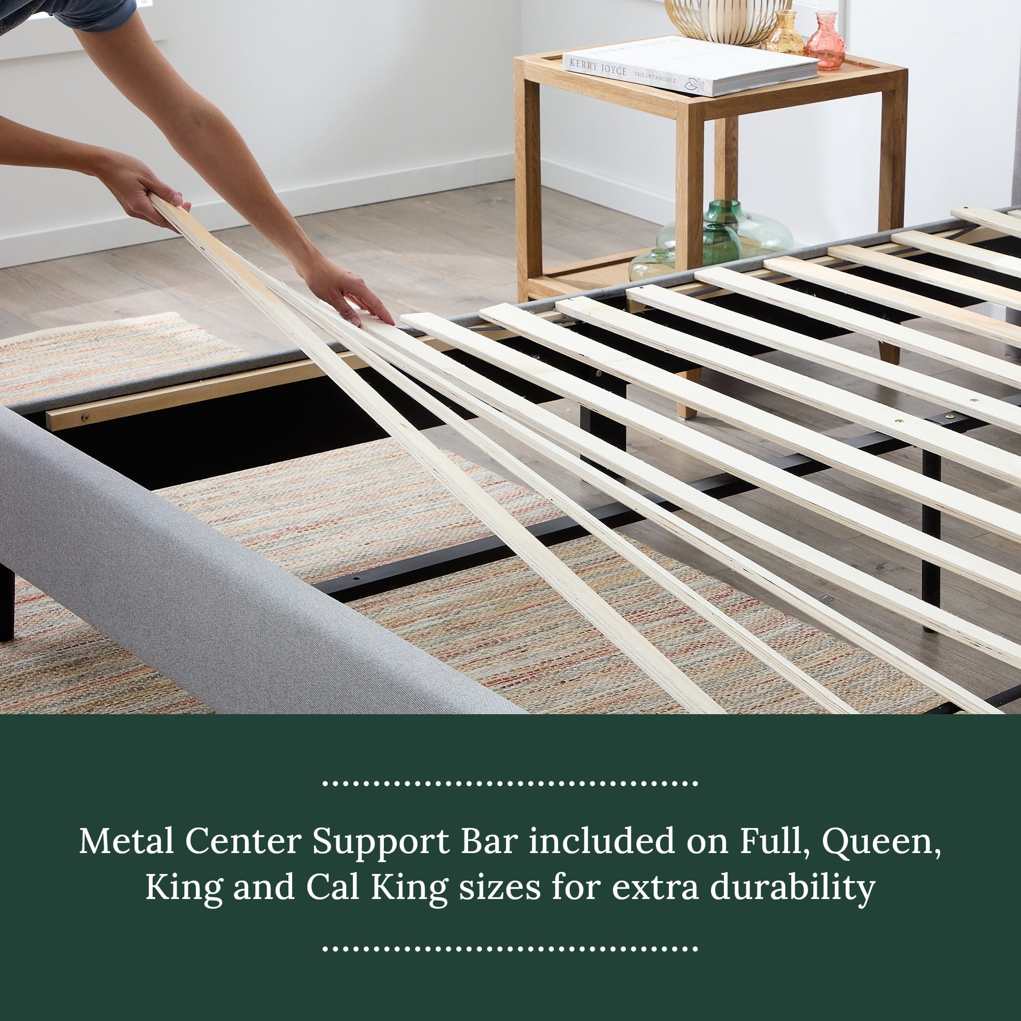 INSPIRED BY LINEN: Our fabric upholstery features a soft linen-like texture CHOOSE FROM 4 COLORS: Available in Charcoal, Gray, Blue, and Cream SOLID WOOD: Our solid Mango wood frame ensures long-lasting durability STURDY SUPPORT: Get strong support with our metal center support bar WEIGHT CAPACITY: This adult bed features a 600-pound weight capacity CONVENIENT SHIPPING: The Renton Bed ships right to your door in one box NO BOX SPRING NEEDED: Designed to work with all mattresses, no box spring needed ADJUSTABLE BASE COMPATIBLE: Remove the slat roll to place your adjustable base. Click here to view our Rest Haven Adjustable Bed Base CHOOSE FROM 6 SIZES: Available in King, California King, Queen, Full, Twin XL, and Twin WARRANTY: Backed by a 2-year limited warranty against manufacturer defects