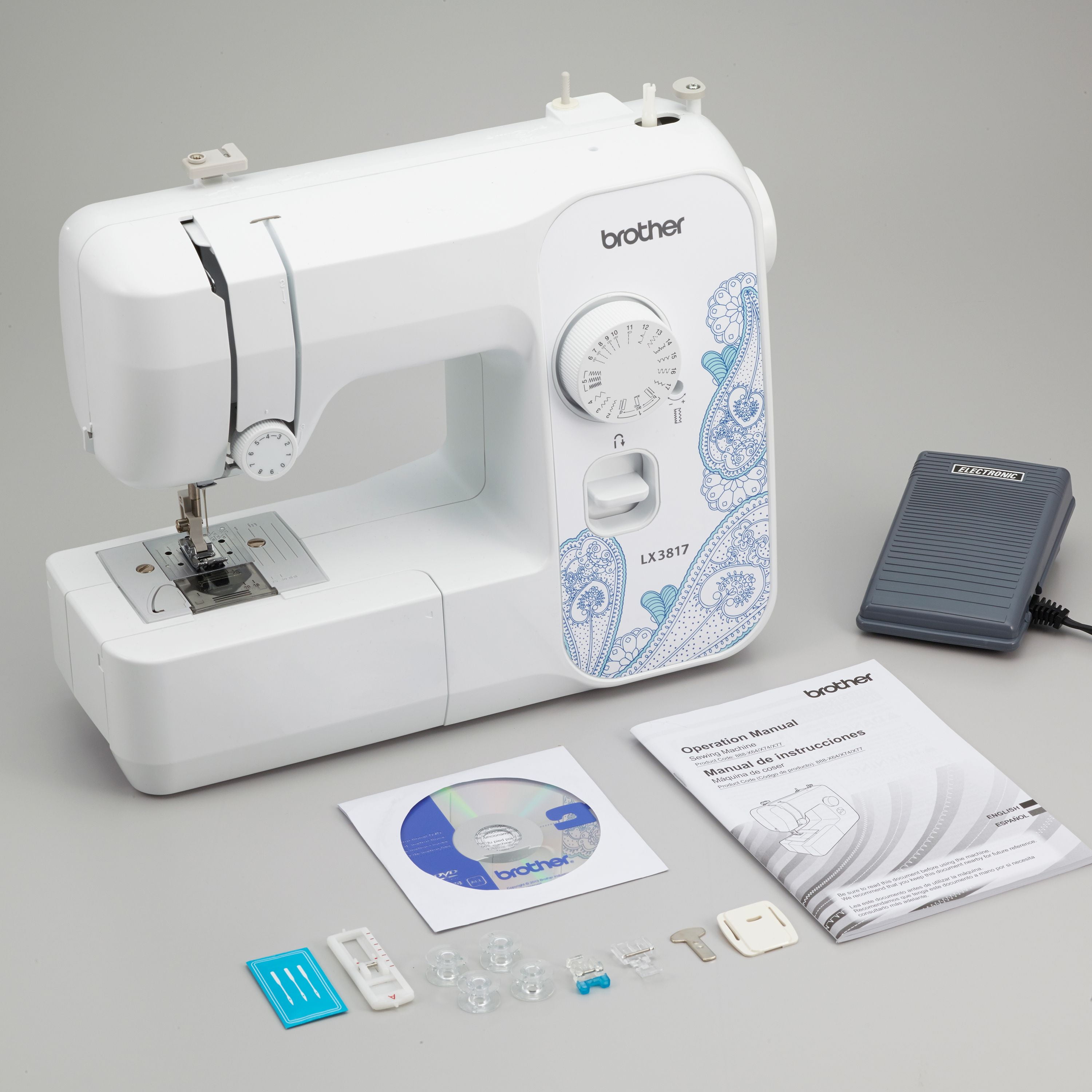 A convenient jam-resistant drop-in top bobbin allow for ease of use This free arm sewing machine is perfect for a wide range of everyday sewing projects and users from beginners to advanced Adjust the tension of your thread to avoid loose, puckered stitches The RLX3817 includes 4 sewing feet, bilingual instructional manual and CD RLX3817 Portable
