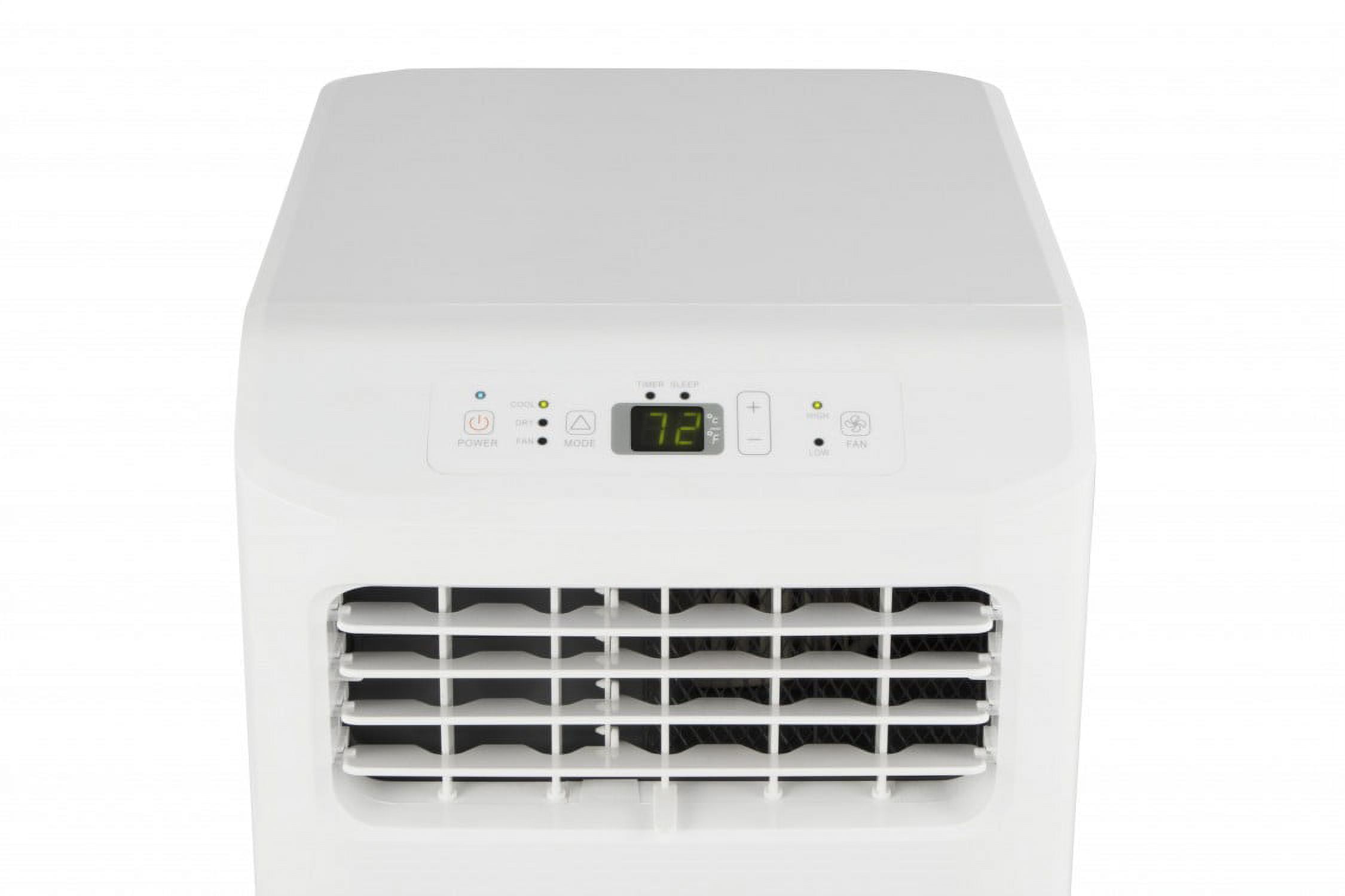 This Hisense 200 sq. Ft. 2-speed portable air conditioner with LCD remote control also features a dehumidifier function. This 8,000 BTU (ASHRAE) and 5,500 BTU (DOE) capacity portable air conditioner can be placed in smaller rooms and is easy to install with the included window kit for windows 18 – 50 inches wide. Additional features include a quiet compressor, and a new centrifugal fan design (provides quiet operation, 47 dB on low), programmable 24-hour on/off timer, dimmable LED digital controls, and 2-way airflow adjustment.