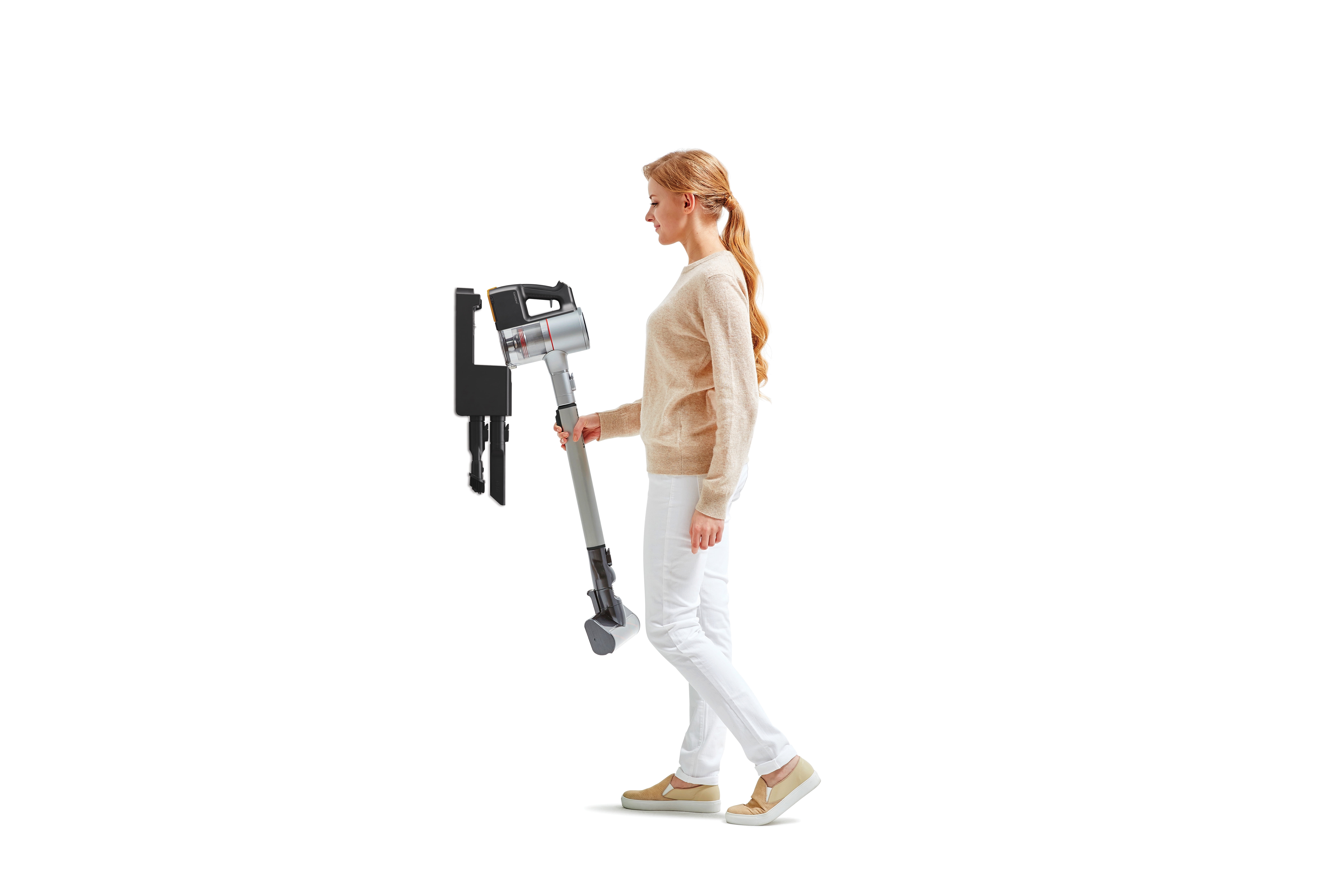 Handheld Vacuum: Just pop off the telescoping handle and insert the nozzle or tool accessory and your cordless stick vacuum quickly becomes a handheld vacuum that you can use to clean furniture, hard-to-reach corners, cars and more.