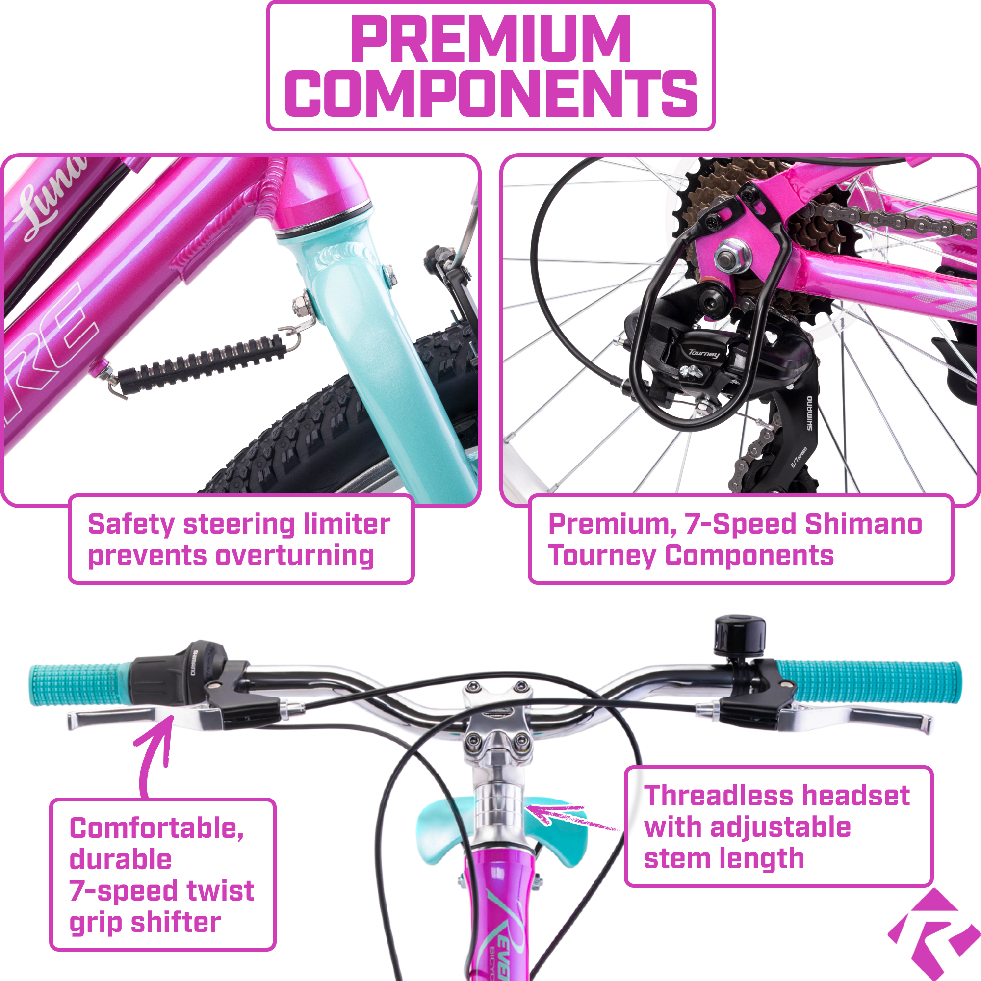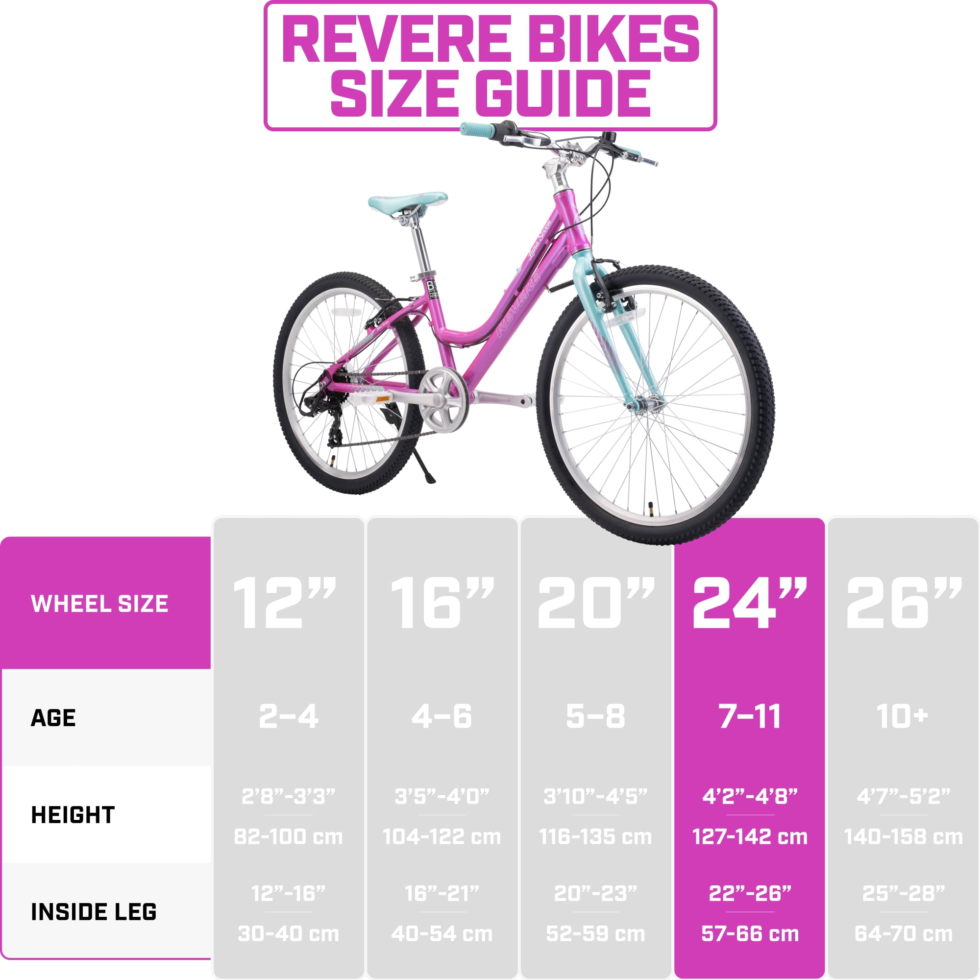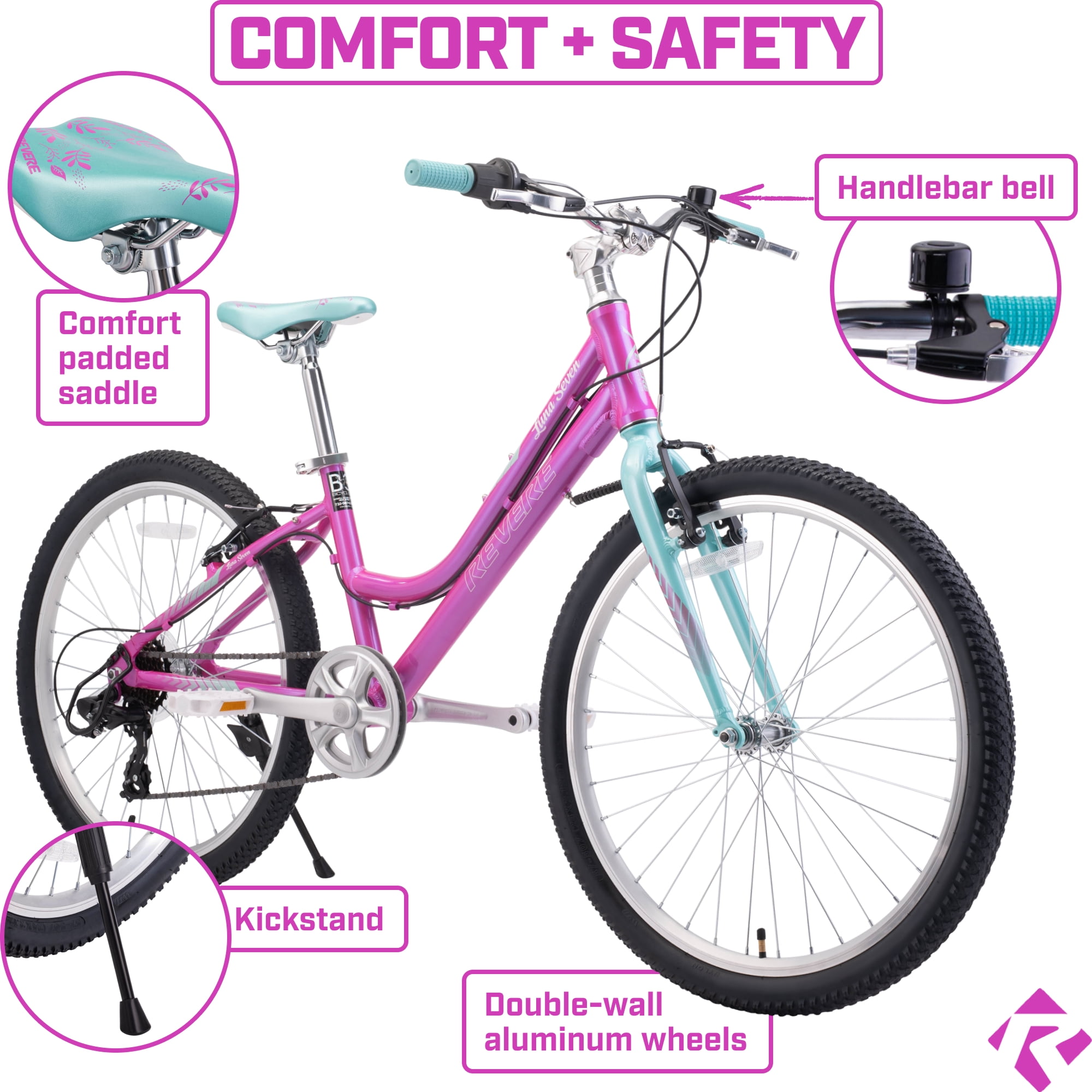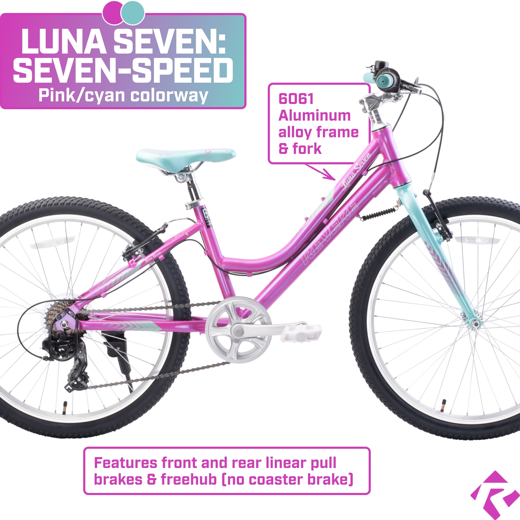 Revere Bicycles Kids and Adults 24″ Girls 7-Speed Cruiser Children’s Bicycle for Ages 7-11 Years Old. Lightweight Aluminum Frame and Fork, Easy to Ride! Pink