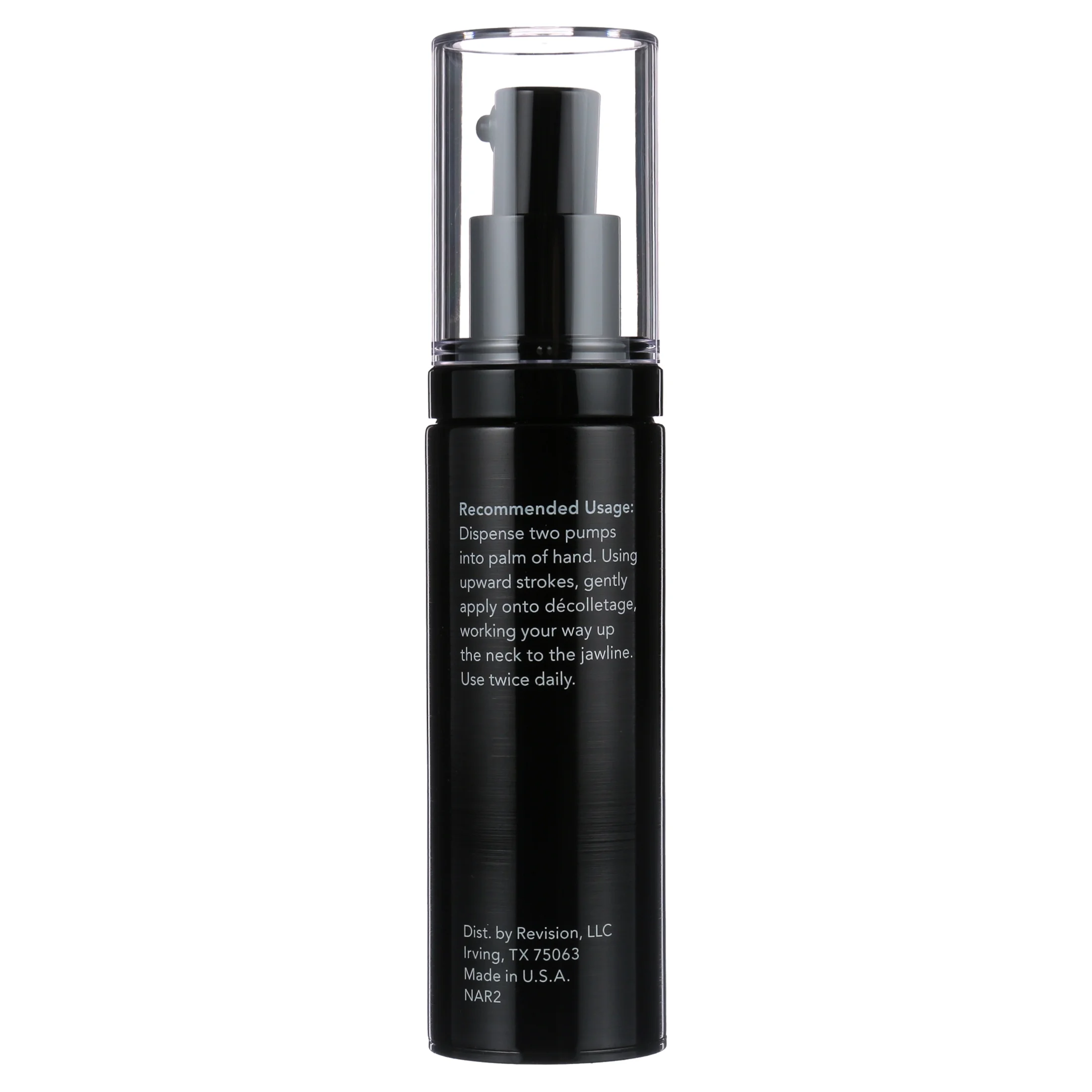 Application: Using upward strokes, gently apply a dime-sized amount onto decolletage, working your way up the neck to the jawline Use twice daily, morning and evening. Neck firming cream has diglucosyl gallic acid: work with the skin’s own microbiome to enhance natural mechanisms for brighter, more even skin tone A proprietary blend of 8 distinctive peptides to lessen the look of fine lines and wrinkles. Lingonberry extract helps the skin enhance its own antioxidant system Revision skincare has extract of red microalgae that soothes and provides a lifting effect Pump dispenser for easy application