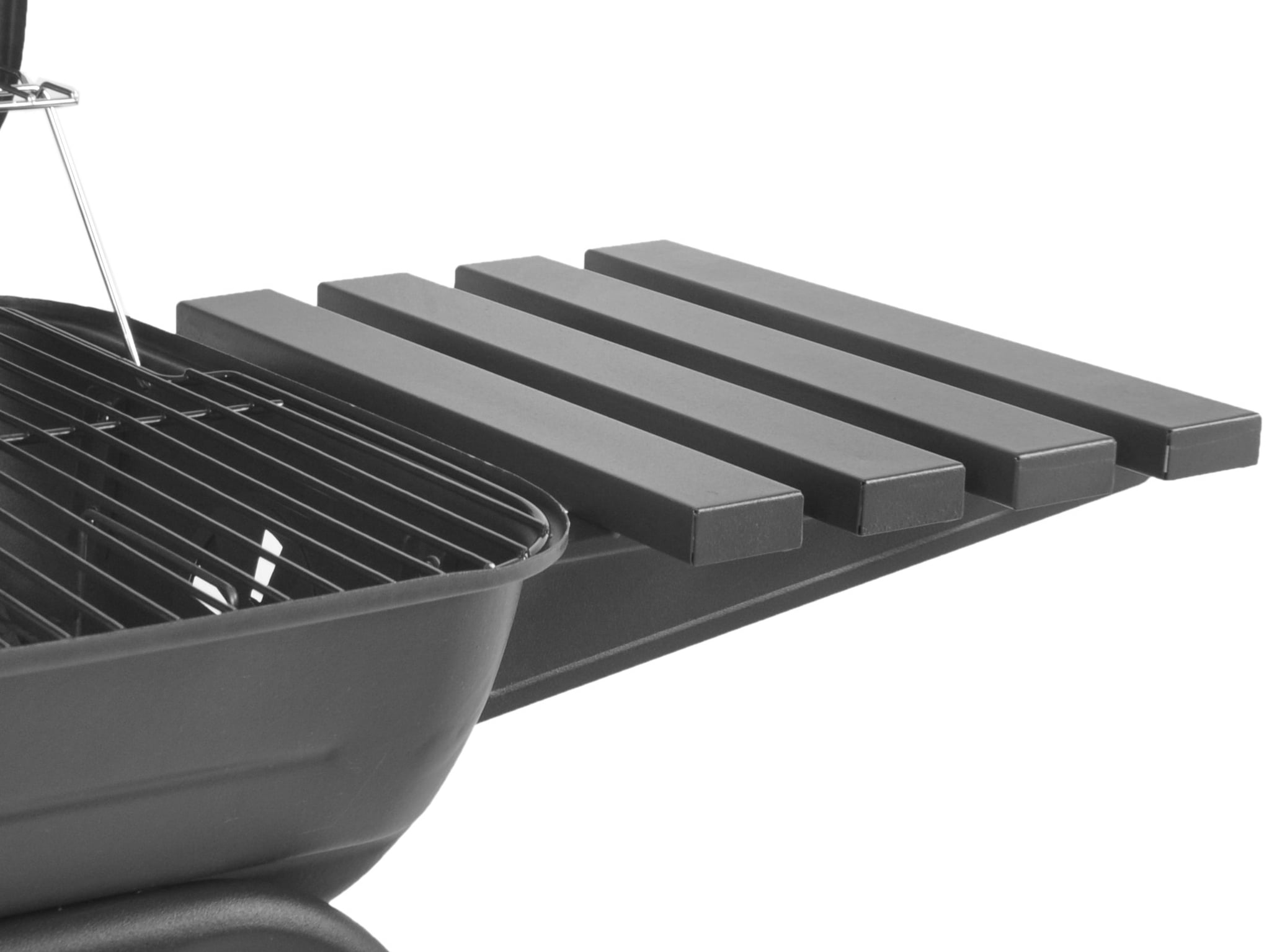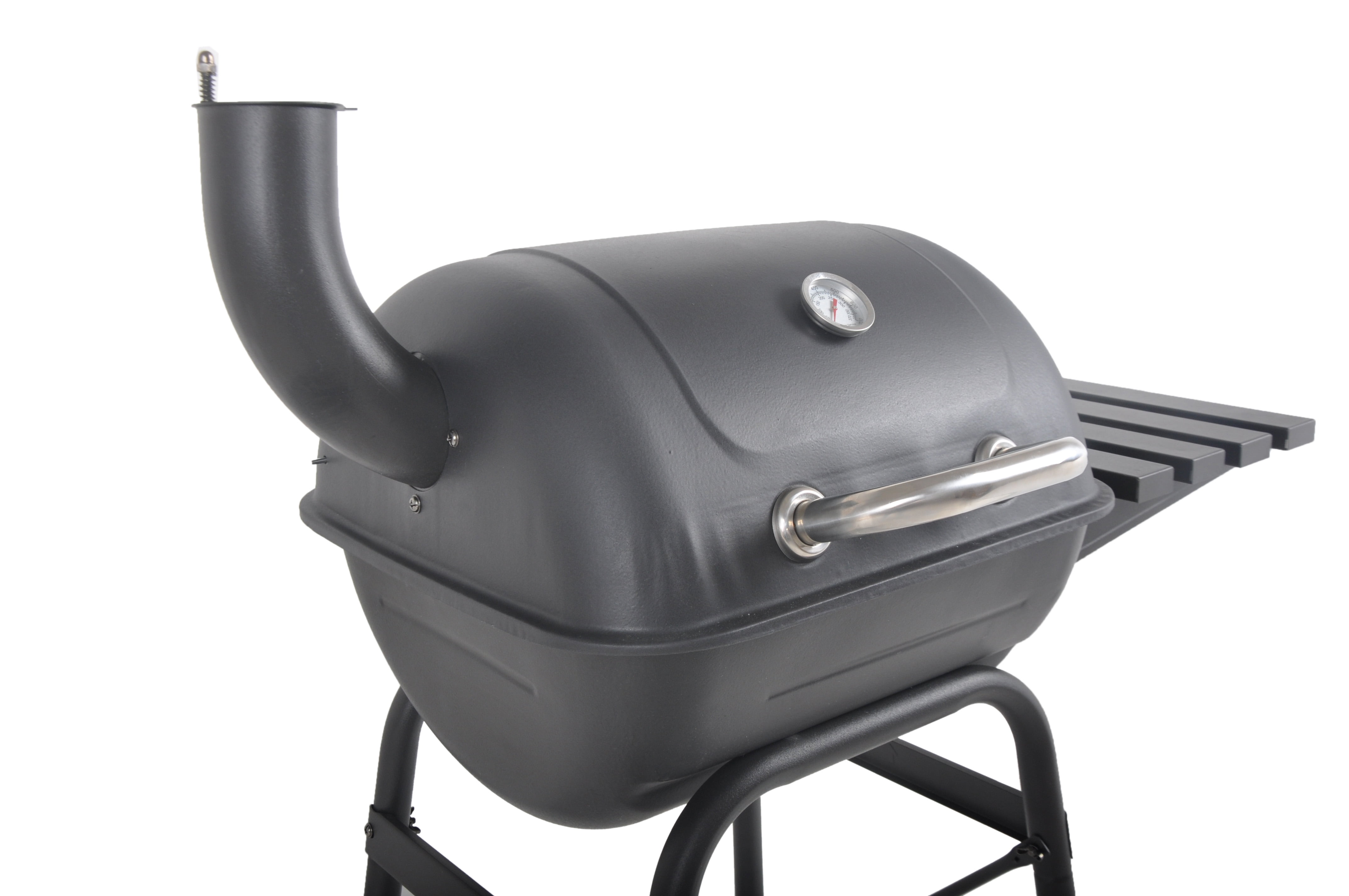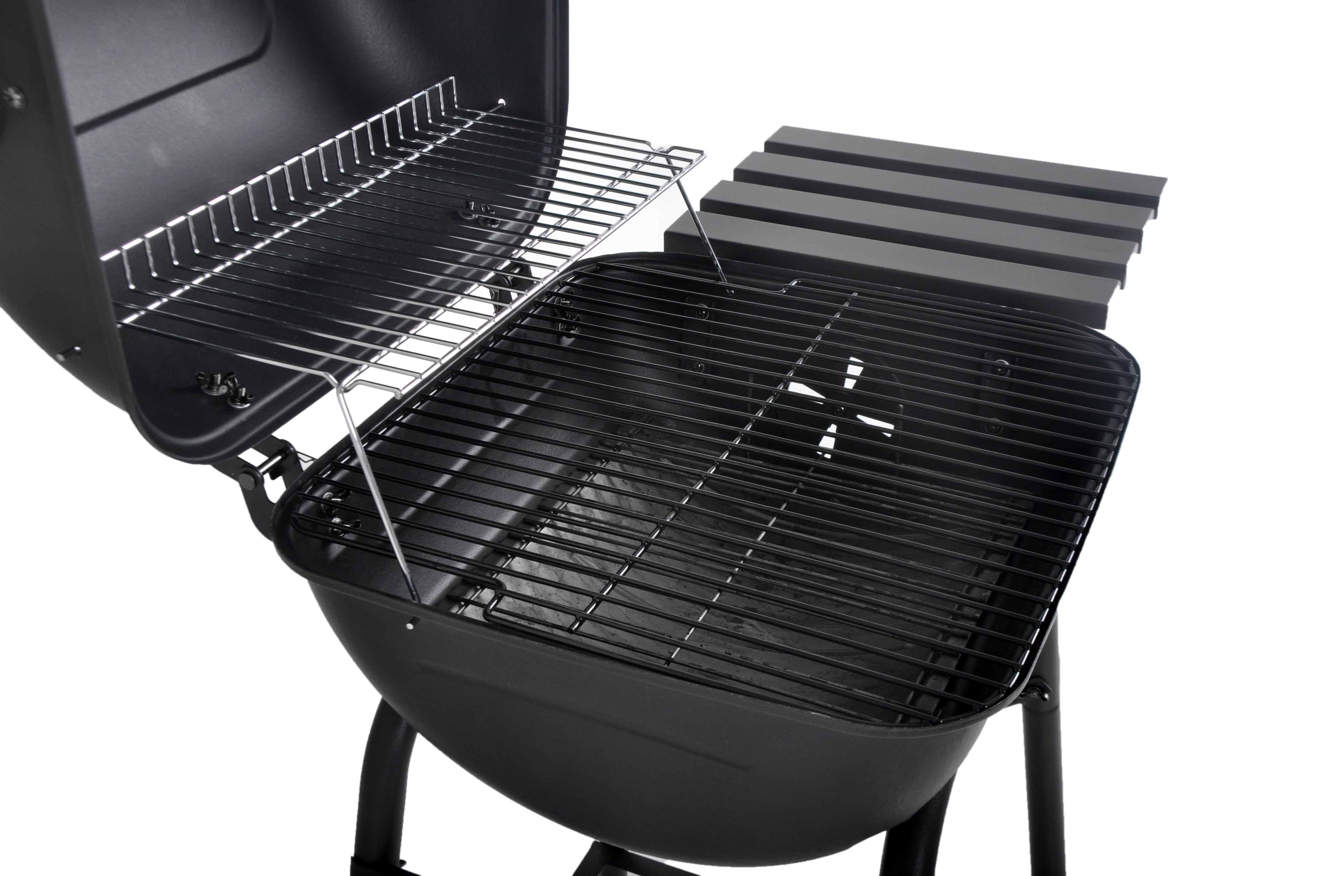 The new rugged and compact design of this mini barrel charcoal grill is large enough to grill up to 16 burgers at one time for your gathering with 306 square inches of cooking space and the warming rack provides an additional 125 square inches of space for your next barbecue. The grill includes a large stationary side shelf for preparation, a removable oil-brushed charcoal grid and attached ash tray for easy clean up, and wheels for mobility. Assembled product weight is approximately 22.5 lbs.