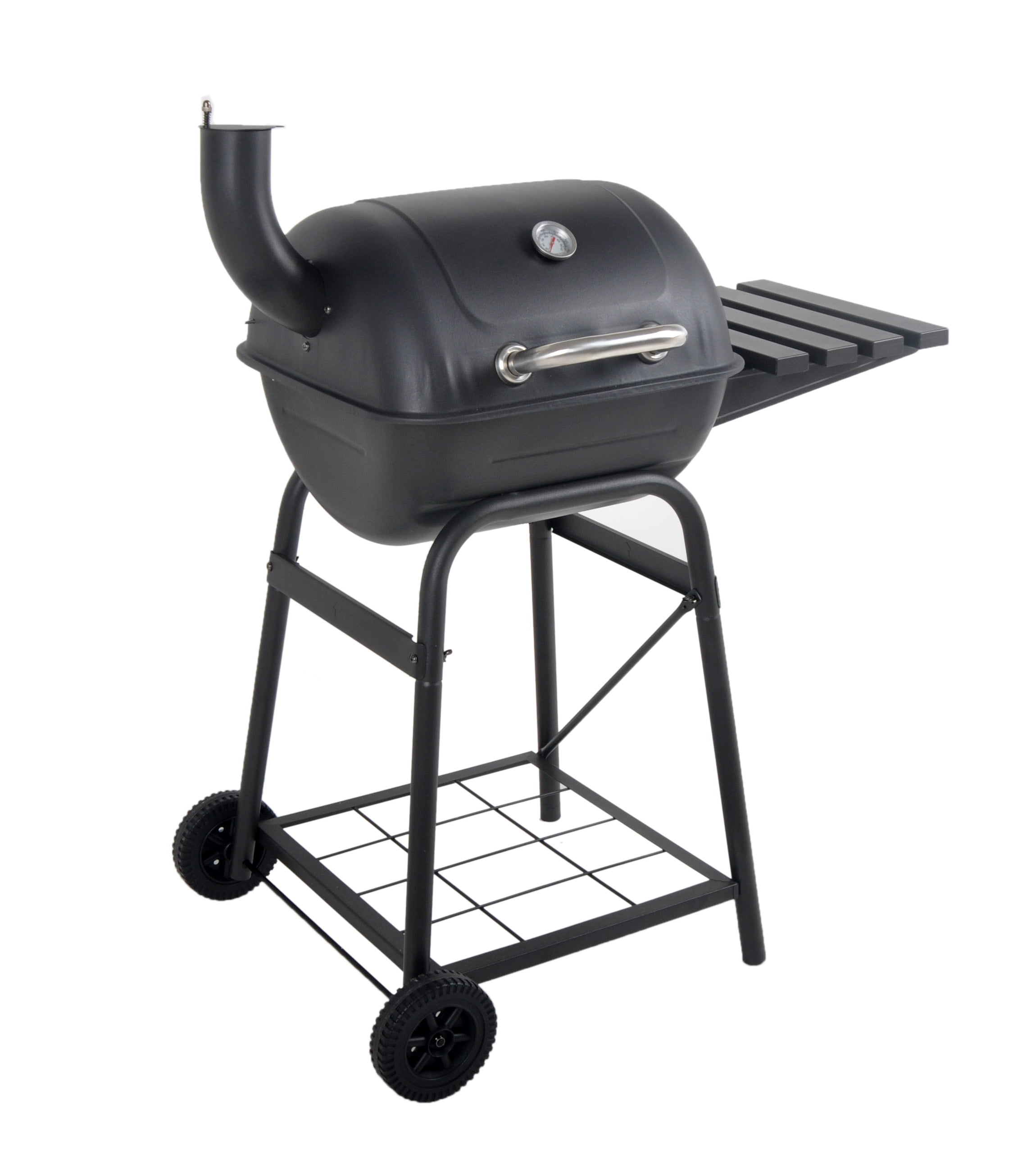 The New RevoAce Mini Barrel Charcoal Grill: 306 square inch cooking surface, 16-burger capacity 125 square inch warming rack Porcelain-coated steel cooking grid Chrome-plated steel warming rack Matte porcelain-coated steel lid with a stainless steel tube handle Matte porcelain-coated bottom bowl Oil-brushed charcoal grid with attached ash pan Round temperature gauge Black steel powder-coated side shelf Two wheels for mobility on the portable charcoal grill Powder-coated steel wire bottom mesh Product measures approximately 41.75” H x 23” W x 35.5” L Carton measures approximately 10.24” H x 19.29” W x 20.87” L Weighs approximately 22.5 lbs. (26 lbs. in the box) Model# CBC1760W Consider purchasing cookware and cooking accessories as needed Don’t forget your charcoal Consider purchasing cookware and cooking accessories as needed Don’t forget your charcoal