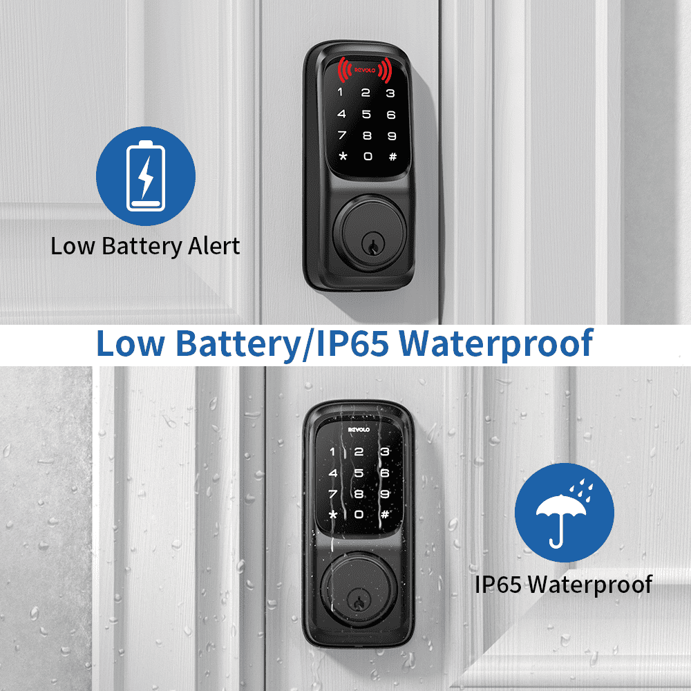 ????️ Keyless Entry Convenience Unlock your door easily with our Keypad Deadbolt Door Lock. The touchscreen offers quick access. Create up to 20 customizable codes for family use. No more searching for keys—just a few taps and you’re inside! ????️ Intelligent Auto-Lock Feature Enhance your security with the auto-lock option. Set it to lock automatically after 30 seconds or use one-touch locking. The anti-peeking feature allows random digits before or after your PIN, adding extra security. ????️ Supreme Security Certification Made with durable all-metal construction, this lock meets ANSI/BHMA A156.40 Grade 2 certification. It lasts over 30 years and functions in extreme temperatures from -35°C (-31°F) to 66°C (151°F). The IP65 weatherproof rating protects it in all conditions. ????️ Extended Battery Life Powered by four AA batteries, this lock supports up to 200,000 openings (about one year). A low-battery indicator alerts you when it’s time for a change. Two mechanical keys are included for backup. Ideal for front doors, bedrooms, apartments, or offices! ????️ Hassle-Free Installation Install the Revolo touchscreen deadbolt lock in minutes—no drilling needed! It fits standard right-handed and left-handed doors. All necessary hardware is included for an easy setup.